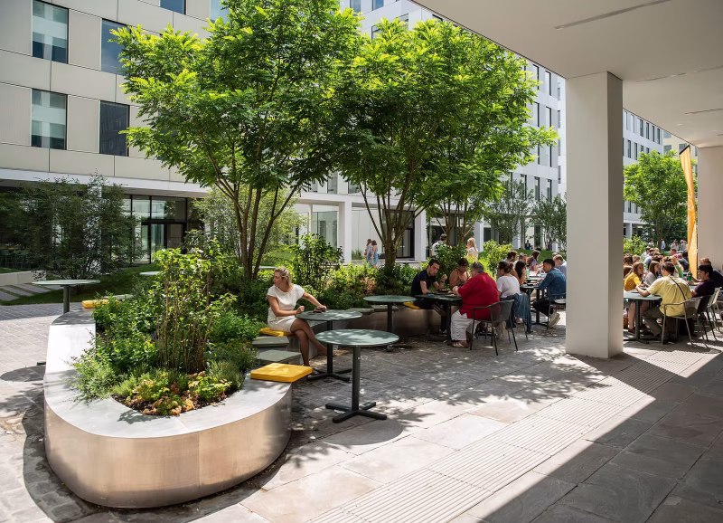 Пространства каждого жилого блока интегрируют элементы уличных фасадов, такие как проекции окон, которые создают ощущение расширенного пространства, открывая новые перспективы для каждого жильца. Жилые этажи соединены с террасами через мансардные окна, что позволяет максимизировать использование наружных пространств.