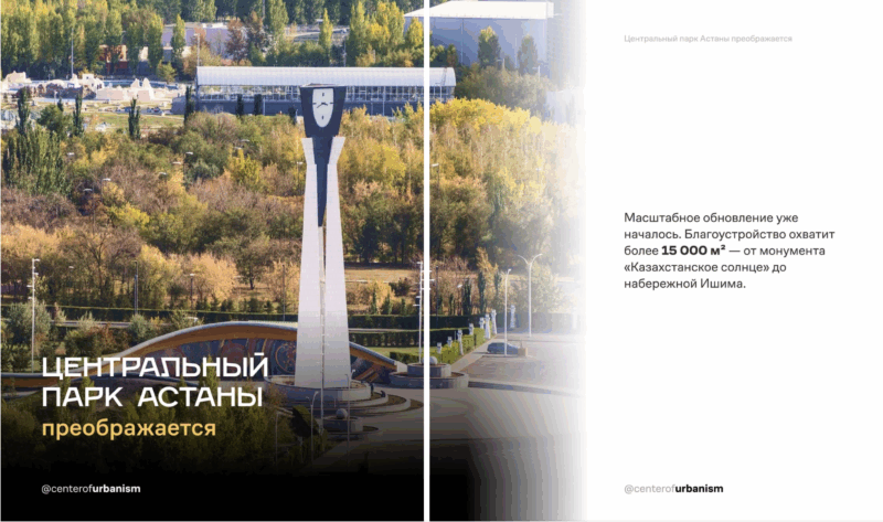 Одновременно ведётся работа по благоустройству общественных пространств, включая создание новых и обновление существующих парков, скверов и дворов. Особое внимание уделяется зелёным кластерам, таким как проспект Мангилик Ел, парк Есиль, Триатлонный и Президентский парки, а также набережной между улицами Кабанбай батыра и Сарайшык.