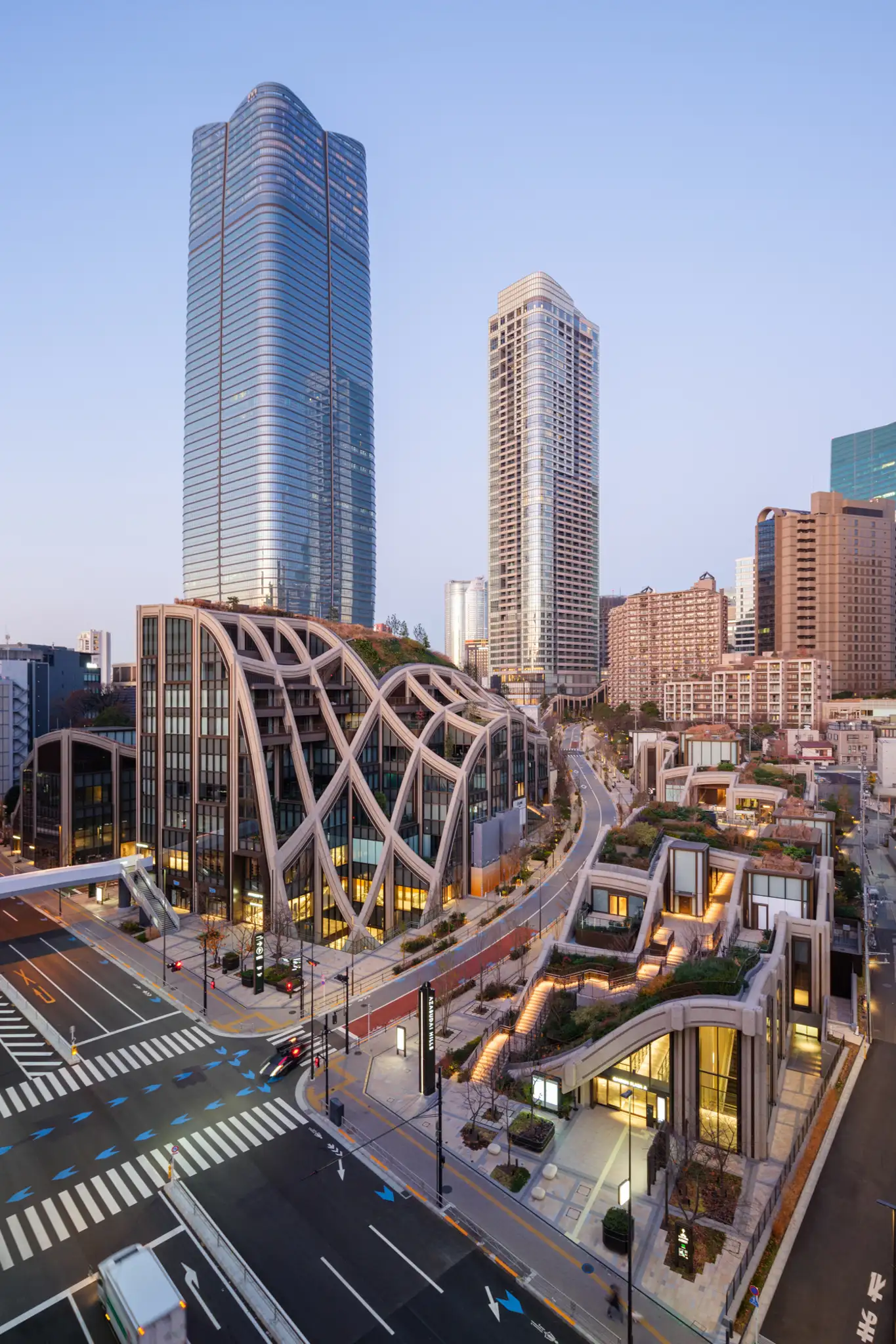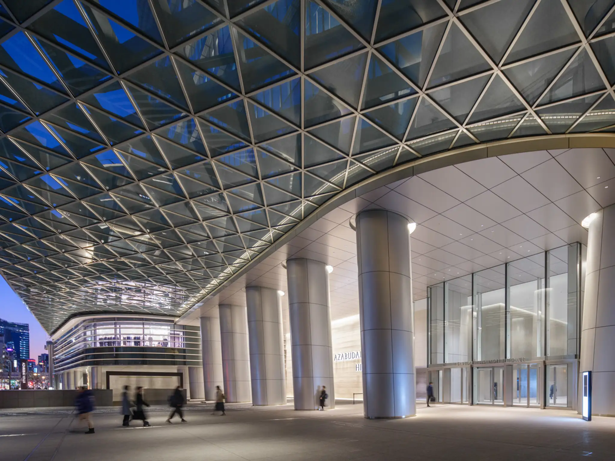 Azabudai Hills открылся в 2023 году и, как ожидается, будет принимать от двадцати пяти до тридцати миллионов посетителей ежегодно.