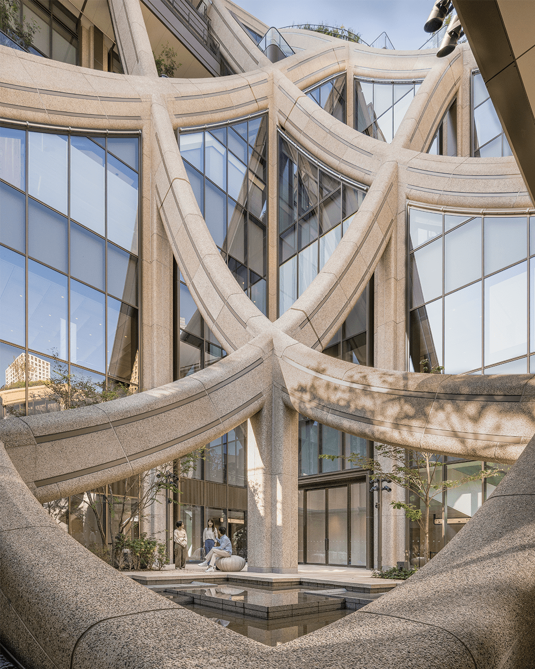 Если небоскребы устремлены ввысь, то задача британского бюро Heatherwick Studio (авторов Vessel и парка Little Island в Нью-Йорке) была в том, чтобы «сшить» городскую ткань на уровне земли. Участок имел сложную Y-образную форму и находился в естественной долине.