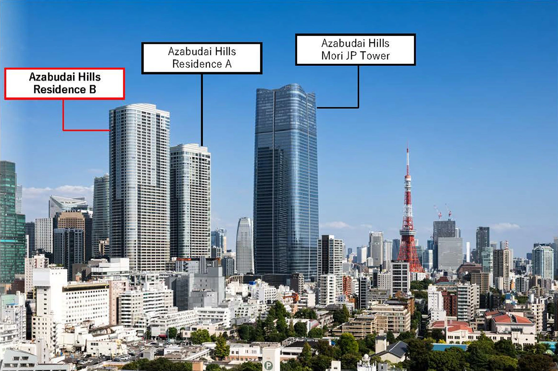 Верхние 11 этажей башни Mori JP Tower отведены под жилые комплексы Aman Residences. Рядом с Mori JP Tower расположены две многофункциональные башни, также спроектированные компанией Pelli Clarke & Partners. 53-этажная Residence A будет включать 320 жилых единиц, а также флагманский роскошный отель Aman на 122 номера, Janu Tokyo. 64-этажная Residence B будет включать 970 жилых единиц.
