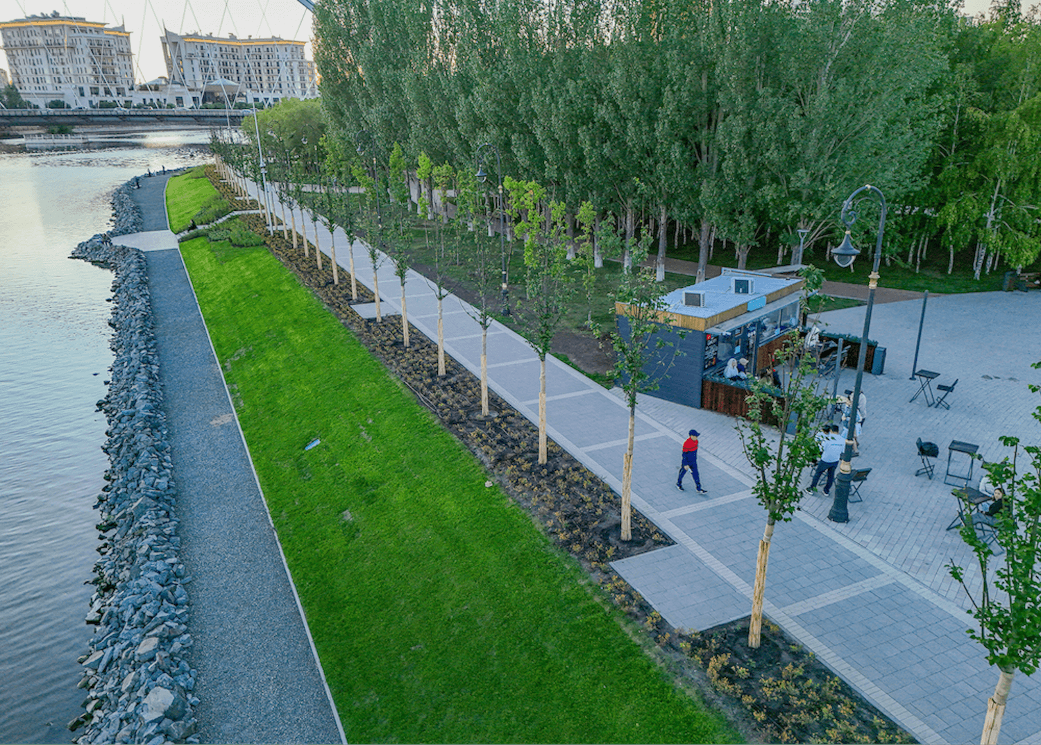 Астана стоит на реке, но доступ к воде долго был сложным. Мы это исправляем. В этом году обновили набережные парка Ататюрк и Триатлон-парка.