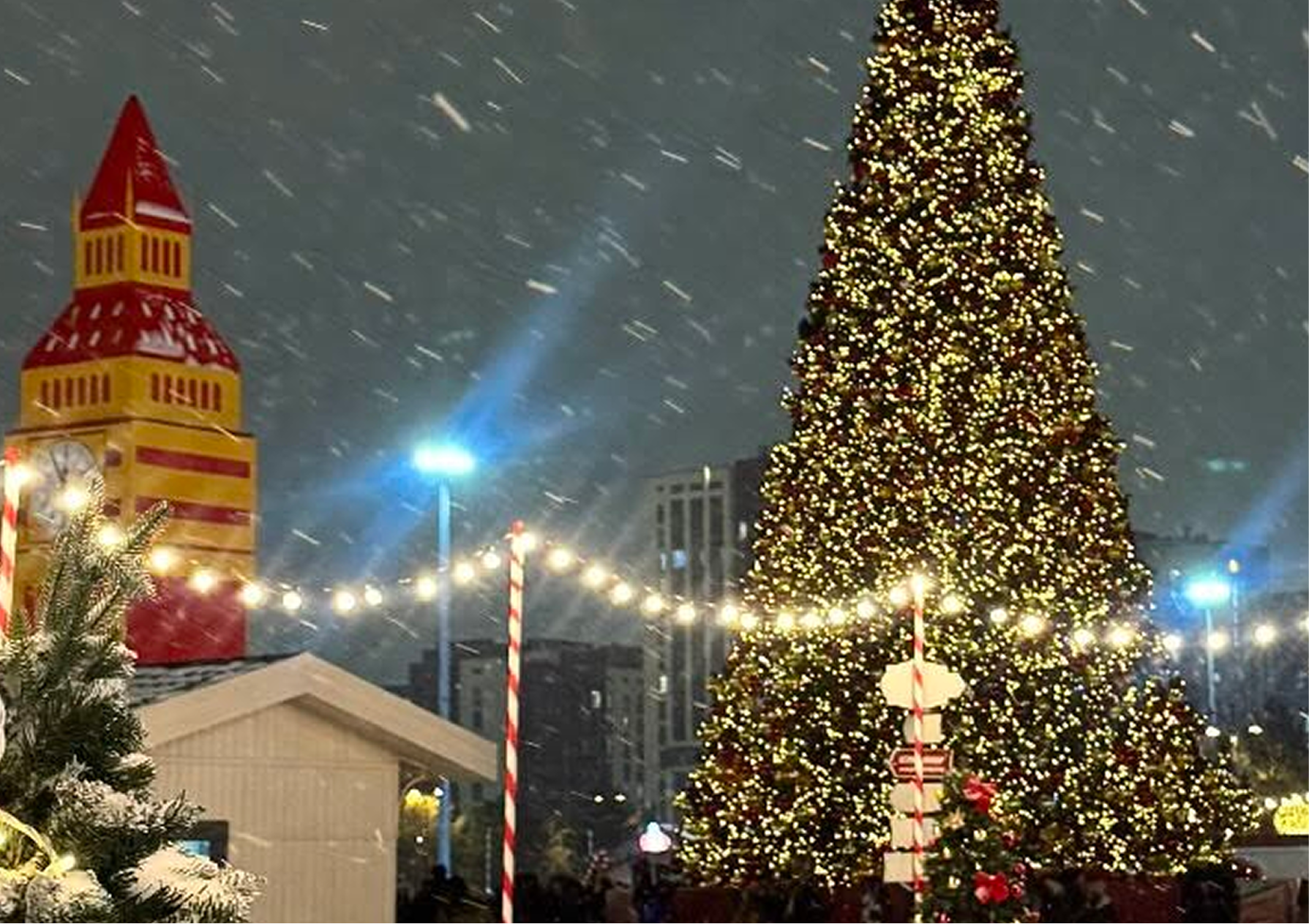 Устанавливаются световые инсталляции, тематические арт-объекты и праздничная иллюминация, формирующие единый визуальный стиль города и создающие атмосферу для жителей и гостей столицы.