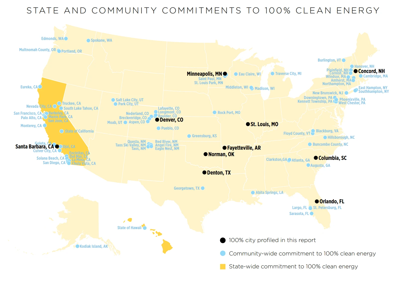 В настоящее время о подобной политике развития заявили около 80 городов Соединенных Штатов. Они стремятся полностью отказаться от топлива, загрязняющего окружающую среду и воздух в пользу альтернативных, возобновляемых источников энергии. Многие города действительно предпринимают значимые шаги в этом направлении, поэтому переход к 100% чистой энергетике сейчас уже не кажется чем-то недостижимым. Важно понимать, что в данном случае речь идет не только о переходе к другой энергетической экономике, но и к другому образу мышления населения. Теперь оно само должно анализировать и принимать соответствующие решения.