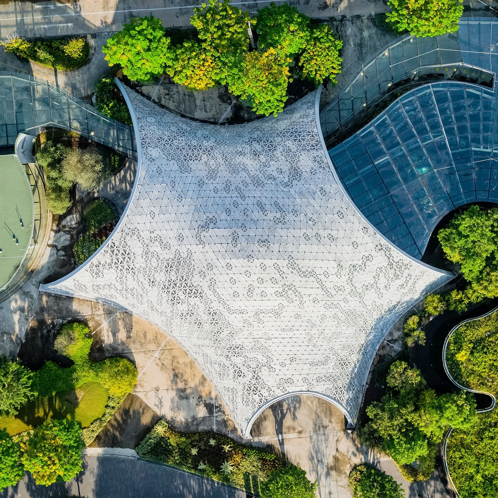 - Вдохновение:Изменение культурной уверенности в себе с помощью инновационных дизайнерских решений. Металлическая сетка работает как энергосберегающий материал, блокируя прямой солнечный свет и эстетически связана с китайской культурой.