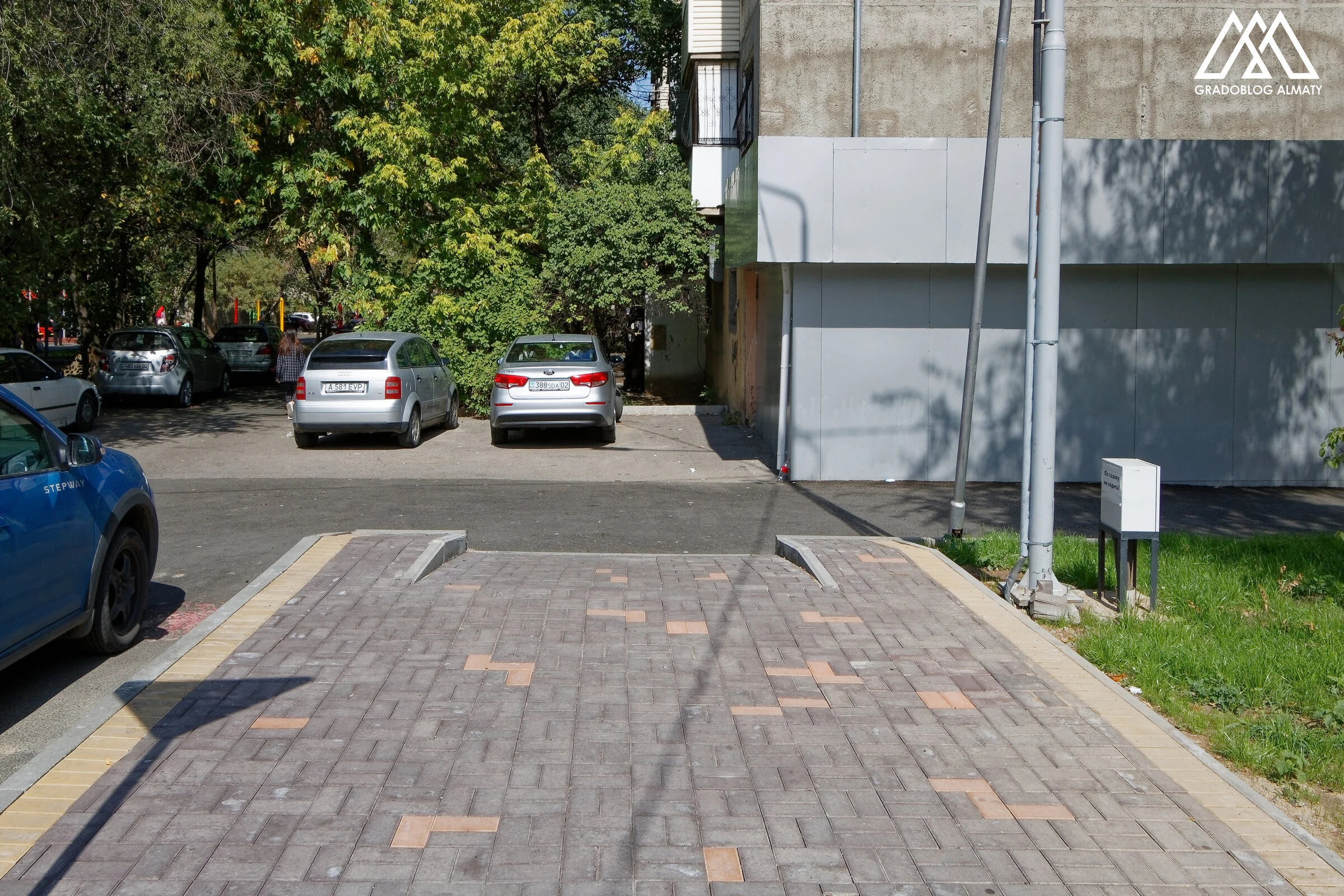 Обратите внимание на фото ДО и ПОСЛЕ. Там видно, что пешеходный транзит использовался в качестве парковки. Мы восстановили все подходы к подъездам и улучшили общий вид места. Теперь тут нет авто. Я прошу рай-администрацию добавить приставные пандусы с к подъездам домов, потому что там живут инвалиды.
