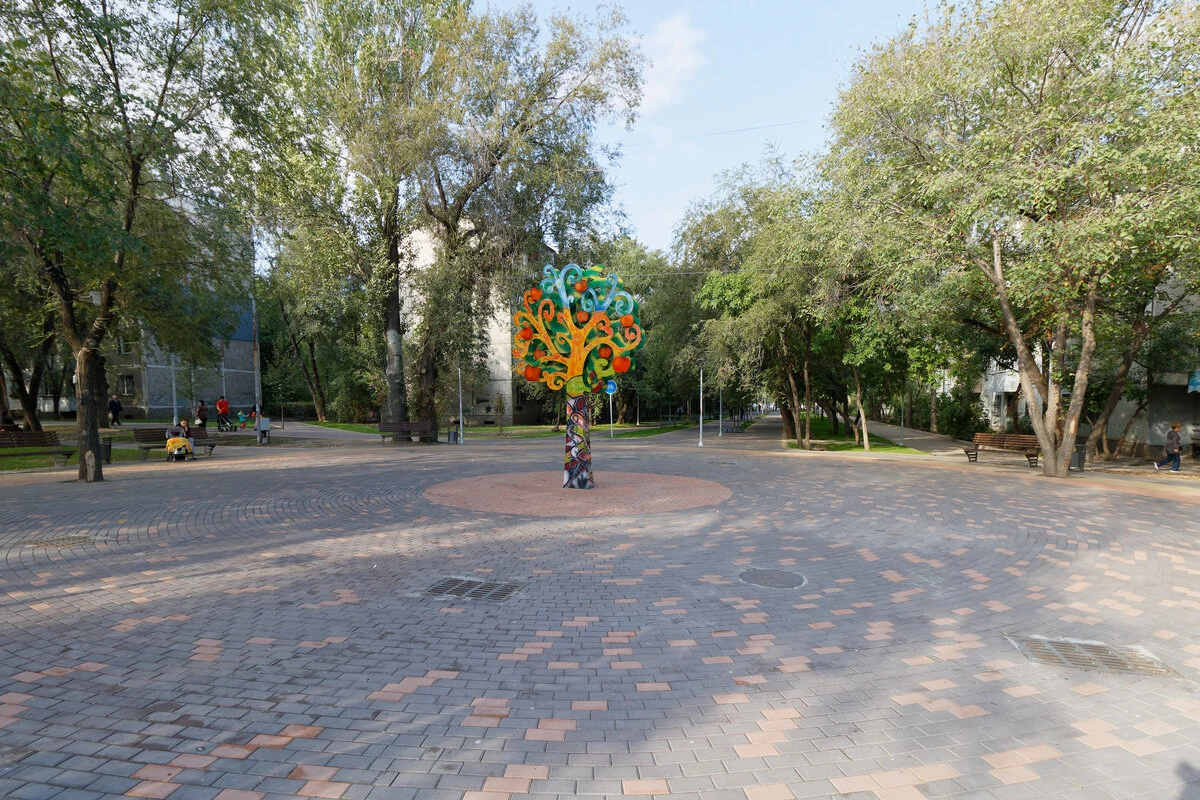 Эта яблоня не моя. Акимат района сам захотел ее поставить, чем расстроил архитектора Романа Шнайдермана. Я бы не отказался от клумбы, по типу той что снесли в парке Горького.