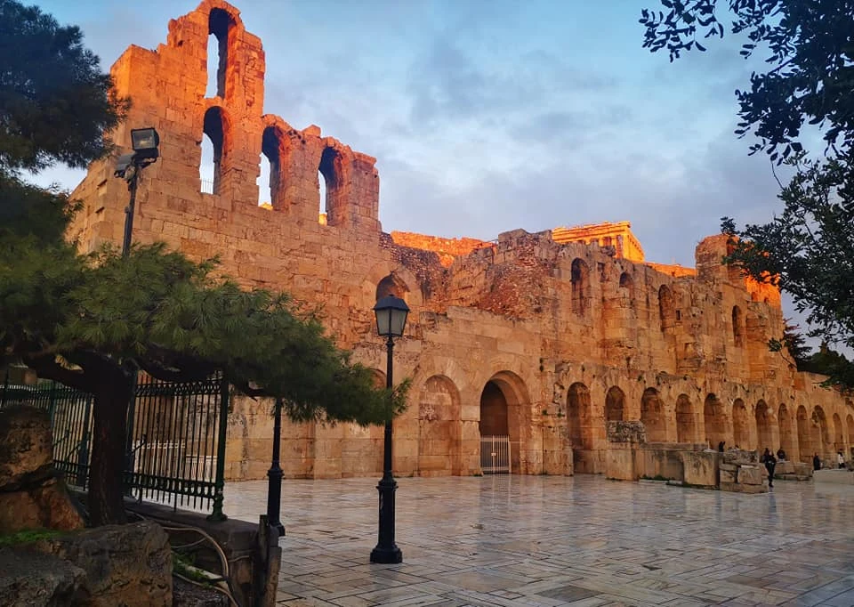 Правда дождик был, но пока я обедал вблизи Акрополя, он прекратился, солнышко выглянуло… Очень удачно, зашёл в Акрополь практически не было людей… Температура +15… только знай себе наслаждайся… В закатных лучах особенно красив, нереальный такой яркий терракотовый оттенок, будто вот-вот загорится…