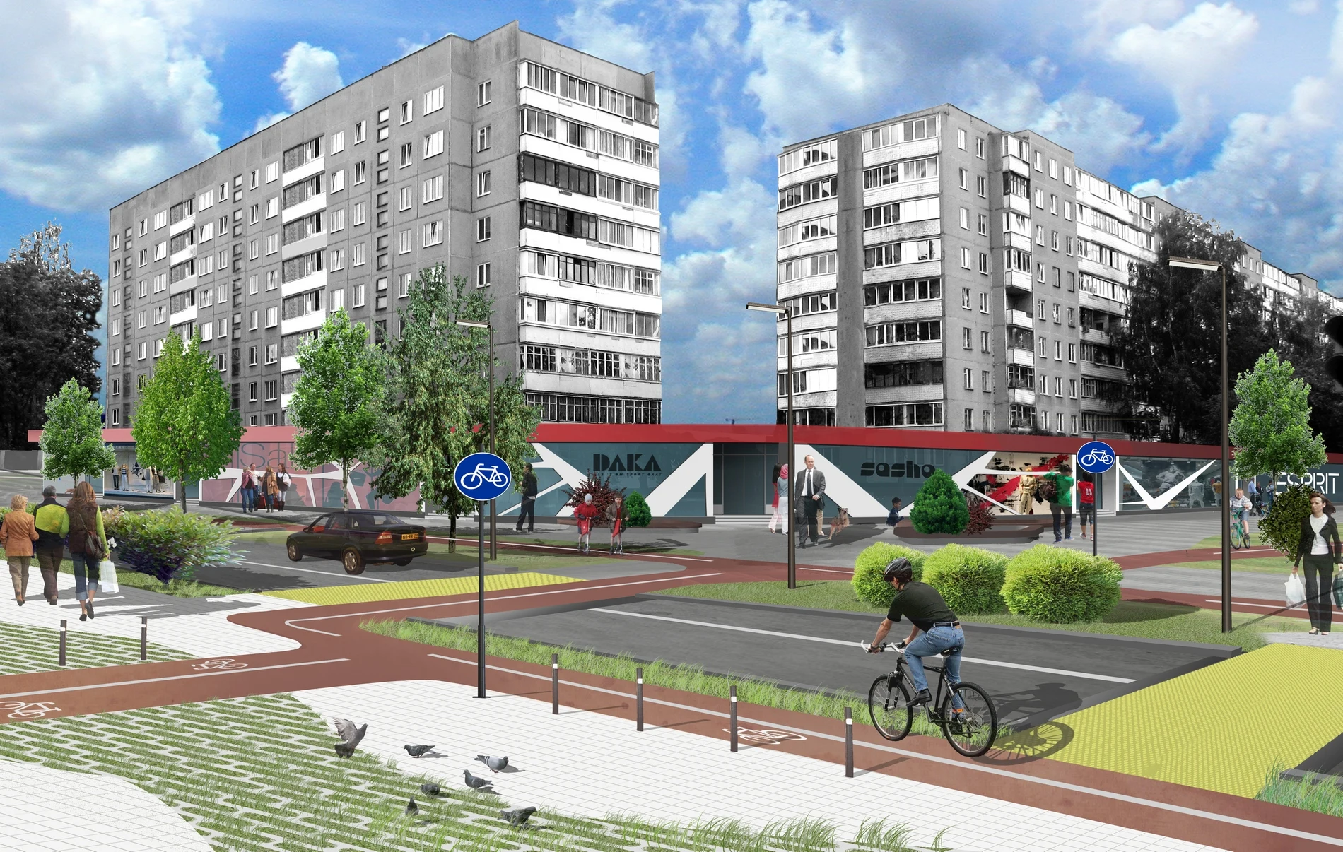 С точки зрения урбан-дизайна, функциональный замысел современной жилой среды заключается в формировании районов смешанного типа (mixed use). Необходимо отойти от концепции монофункциональных жилых образований (спальных районов) с очень ограниченным набором объектов культуры и обслуживания, и практически без рабочих пространств.