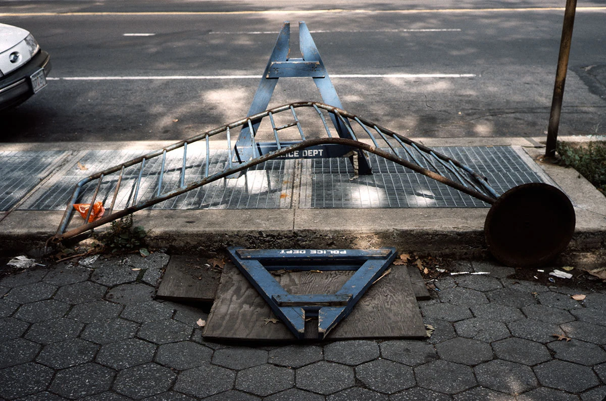 Наконец, есть ограждения, которые вообще не имеют ни цели, ни назначения. Они самые забавные в коллекции Питера Киза. Например, некоторые баррикады сигнализируют об опасности для людей, а на самом деле сами защищаются от них. А еще можно встретить метабаррикады, которые существуют исключительно для защиты других защитных конструкций.