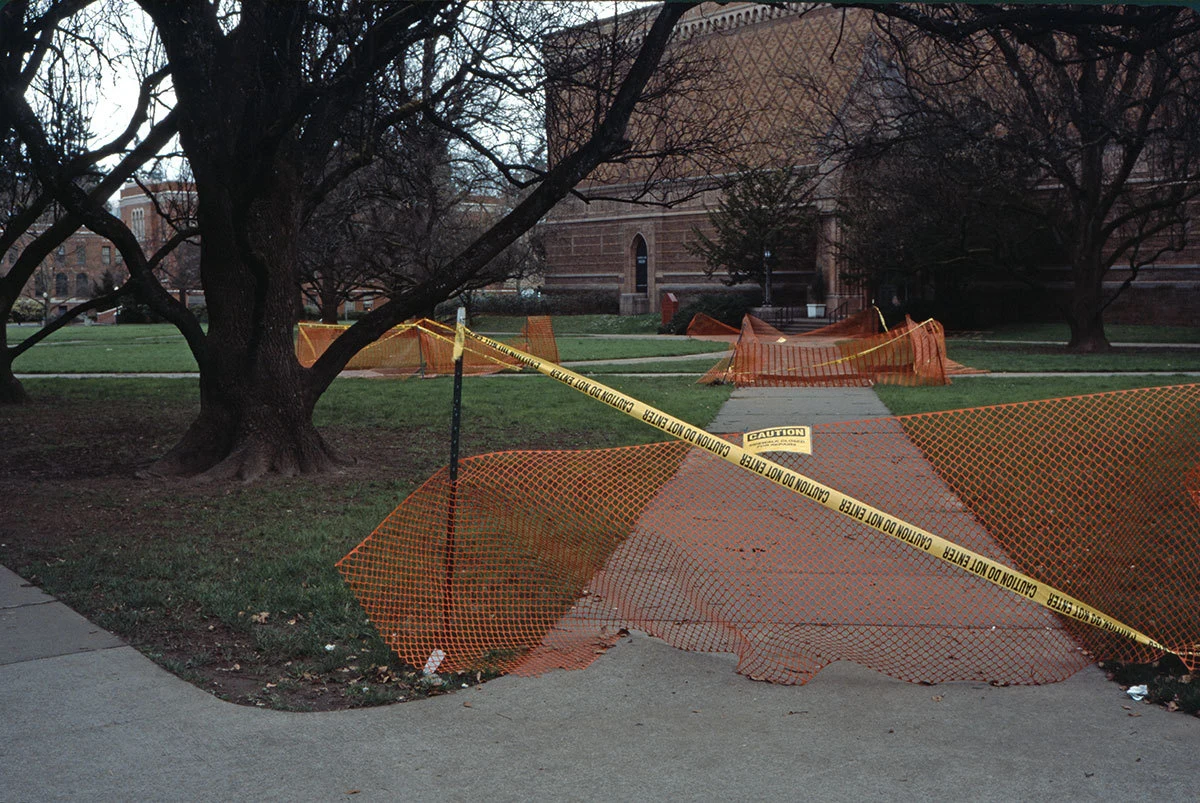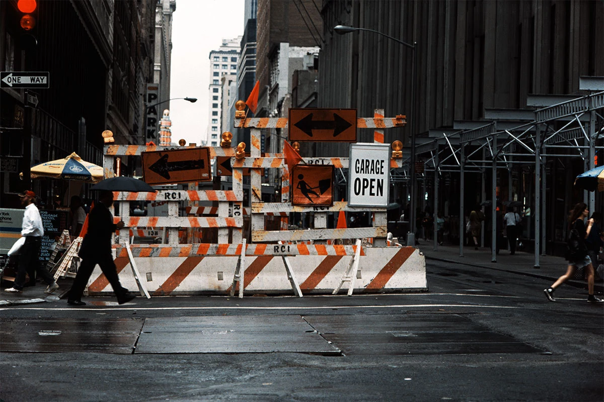 Городские баррикады скрывают в себе парадокс. Их смысл виден и понятен, но на них никто не смотрит. Мы видим характерные приметы (оранжевую ленту, яркие конусы) и эта символика нам ясна с первого взгляда: опасность.