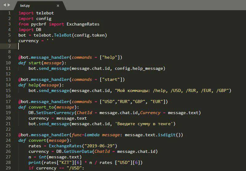 Проект Гани: телеграм чат бот для отслеживания цены мировых валют относительно тенге. Принцип тот же: программа берет данные по курсам валют напрямую с сайта Центробанка РФ