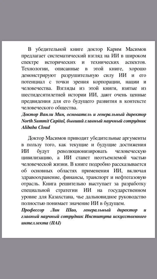 2. Подбор фактов и логика построения книги позиционирует Карима Масимова как техноевангелиста и современного человека, что сразу переводит его на другой уровень восприятия молодежью и качественно образованными людьми. В ту же сторону работают многочисленные теплые отзывы от известных личностей вроде Джек Ма, Германа Грефа и Аркадия Воложа. В сочетании с его имиджем марафонца – совсем интересное кино. Готова купить билеты в первый ряд.