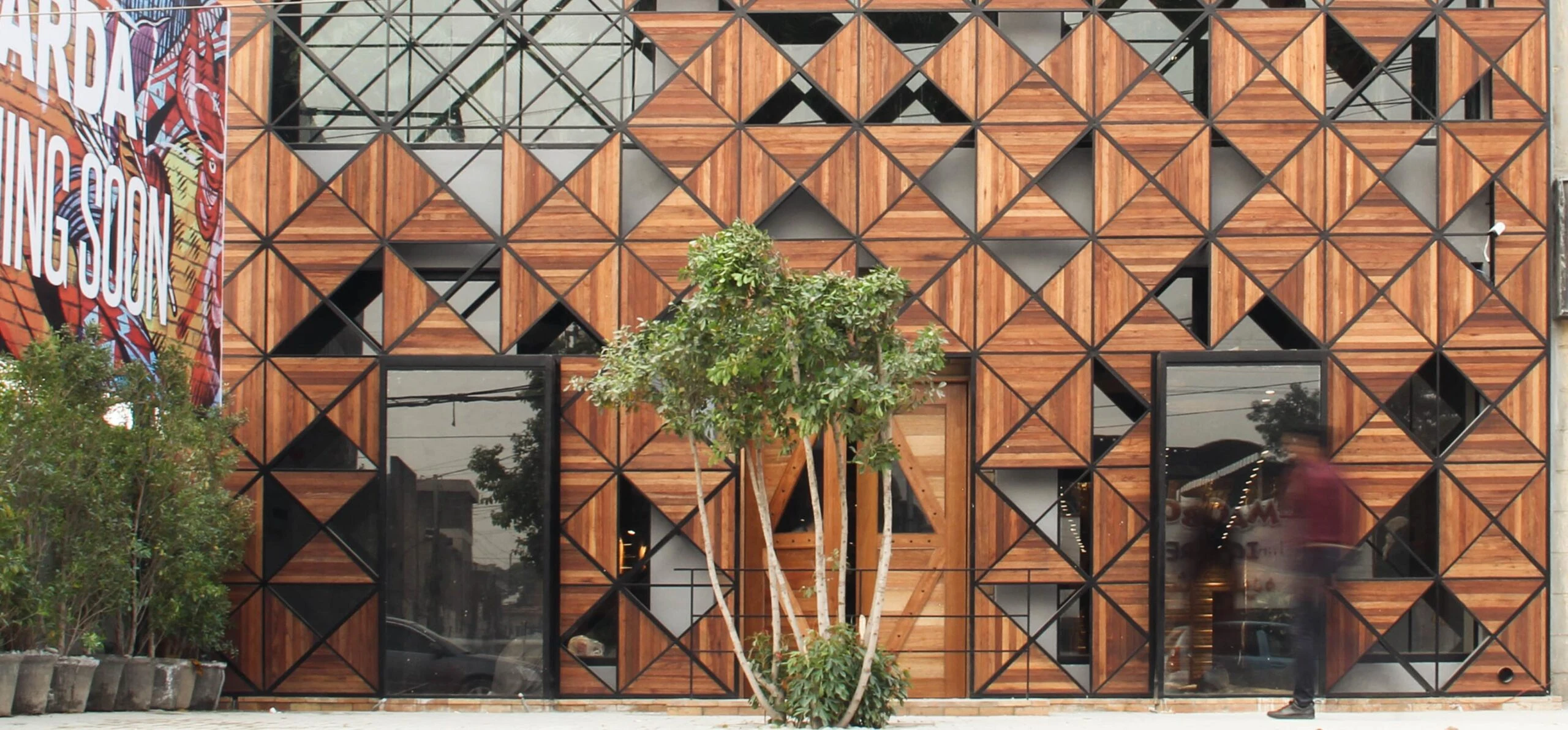 MSA провела тщательное исследование наследия города Пешавар. Город имеет долгую историю использования кирпича в качестве основного строительного материала и дерева в качестве основного материала интерьера. MSA перевернула эту взаимосвязь, используя древесину в качестве основного внешнего материала и кирпича в качестве основного отделочного материала внутренних стен. Этот сдвиг материалов дал флагману уникальный эстетический опыт и по-прежнему поддерживает тот же старый традиционный подход к материалам.