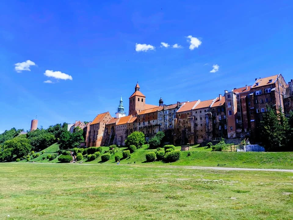 Но когда прямо по дороге с левого берега Вислы на правом берегу я увидел, взгромоздившийся на прибрежной кручи средневековый городок, я не выдержал… При подъезде к городу выяснилось, что город этот Грудзендз (ранее прусский город Грауденц), а то, что казалось стенами, оказалось средневековыми небоскребами построенными вдоль обрыва у реки… А небоскрёбы эти по сути были средневековыми зернохранилищами… Над городом ранее располагался замок, из которого восстановили только главную башню… С этой башни открывается шикарный вид на город и долину реки Вислы и на саму Вислу…)))