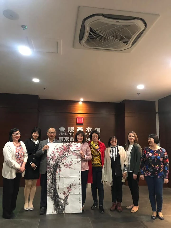 В г. Нанькин нашу делегацию принимали в Художественном музее. Там же находится Нанкинский институт живописи и каллиграфии. Директор музея, действующий художник показал нам мастер-класс, подарил нашему музею свою картину. В просторных залах сейчас проходит выставка современных художников Китая, в том числе там представлена его картина.