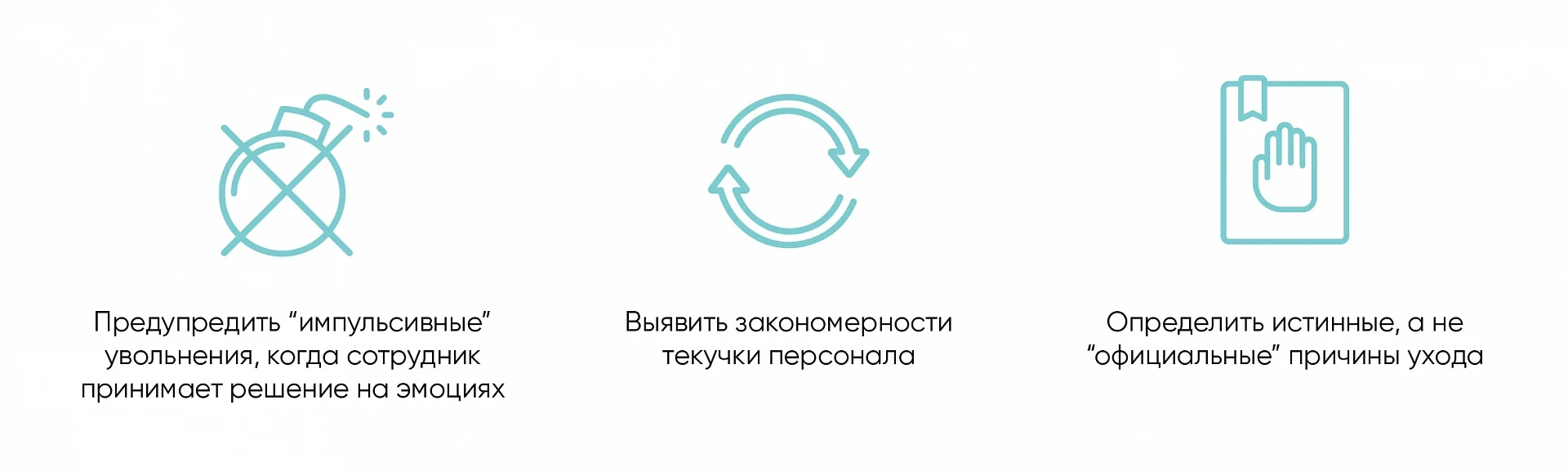 Чтобы понять, проанализировать и устранить основные причины потери сотрудников, узнайте, проводится ли в вашей компании “выходное интервью” – опрос всех, кто увольняется. Если нет, обязательно используйте этот инструмент. Он помогает: