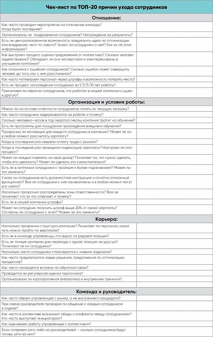 Предлагаем чек-лист на основе причин ухода сотрудников. Проверьте себя, отдел и компанию и внедрите улучшения уже сейчас.