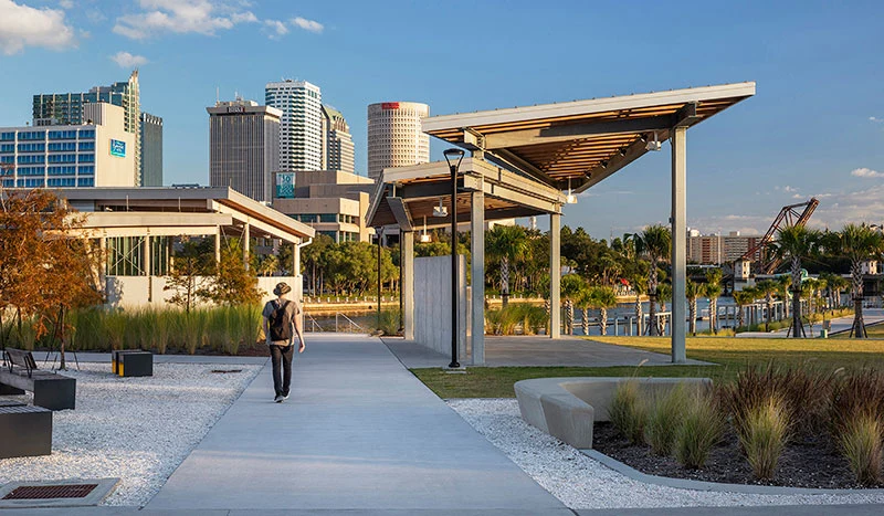 Реконструкция речного парка Julian B. Lane превратила парк, который находился в аварийном, небезопасном и непривлекательном состоянии, в яркое, интересное и устойчивое общественное пространство, отвечающее желаниям общества и целям плана InVision Tampa.