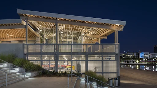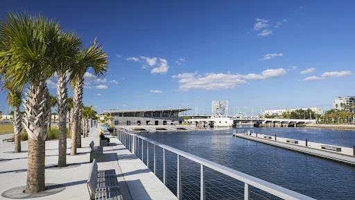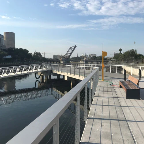 3) доступ к реке Хиллсборо – с речной набережной всего в трех футах (1 м) над поверхностью воды, эллинг, немоторизованные суда, и плавучий пешеходный док высотой 220 футов (67 м);