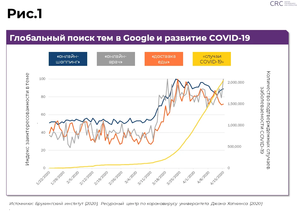 С внедрением общенационального карантина в разных странах интерес к электронной торговле стал расти: за последние полгода все больше пользователей интернета интересуются возможностями покупки товаров и услуг онлайн (Рис.1).