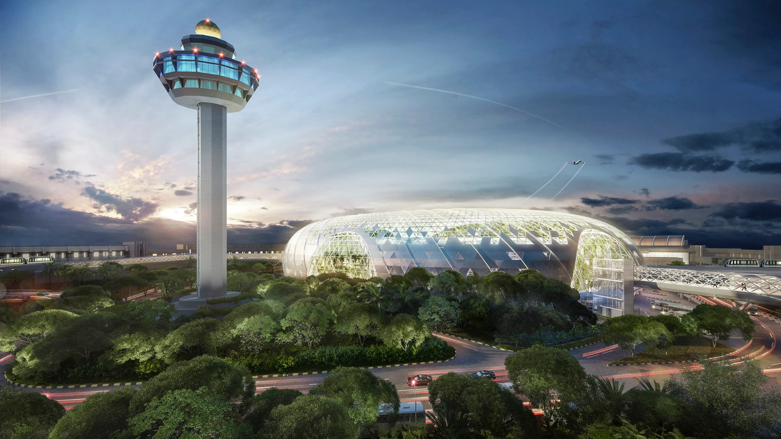 В ночное время «Вихрь Дождя» будет освещен на 360 градусов, запланирован показ лазерного шоу. Новое здание интегрировано с системой общественного транспорта Сингапура и соединяется с терминалами через пешеходные переходы.