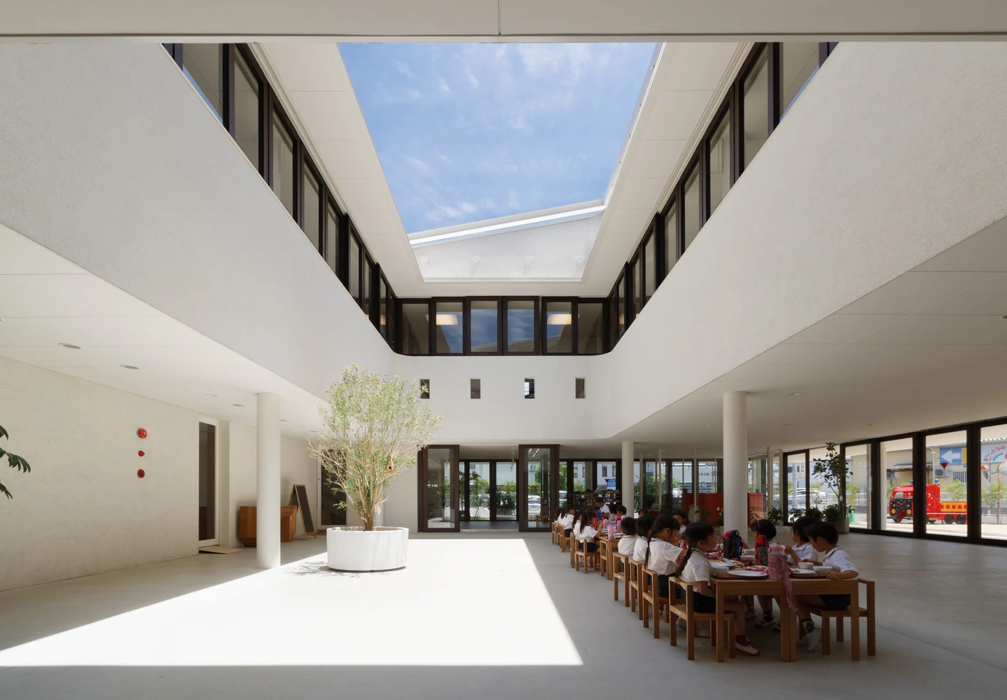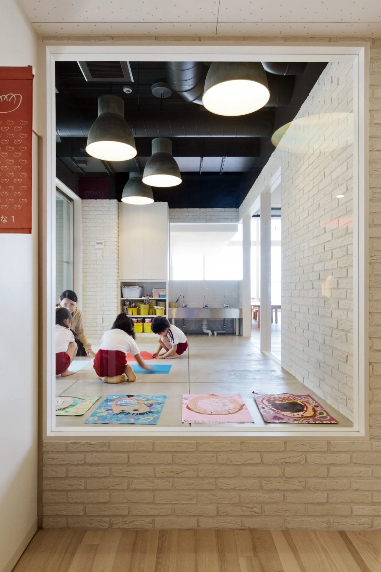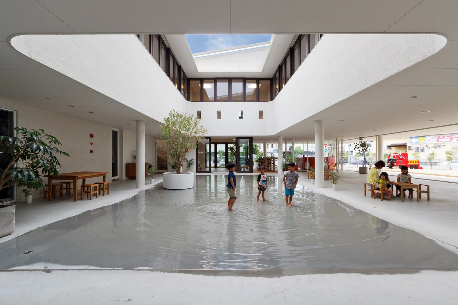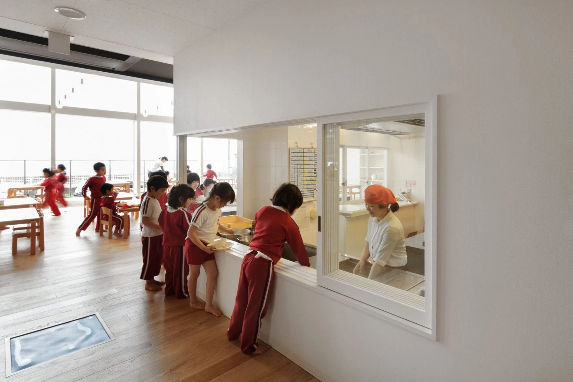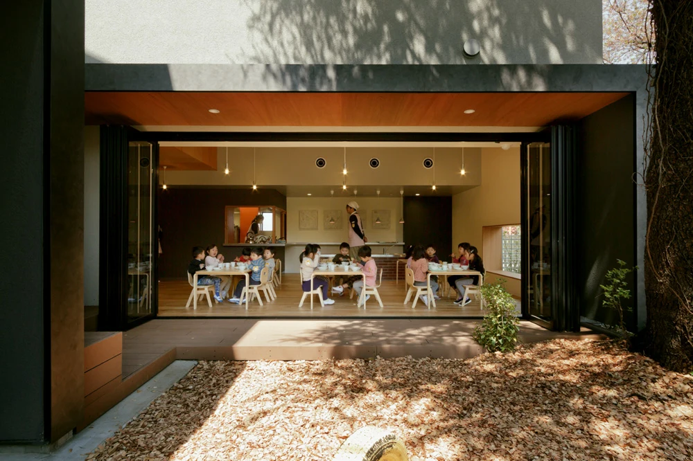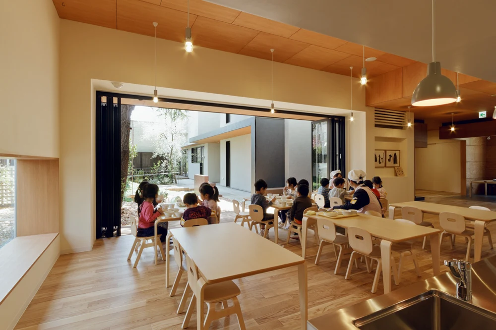 Созданная структура детского сада, открытая для общения, дает возможность погрузиться в домашнюю обстановку и благоприятствует непринужденному общению среди ее обитателей, которые стали всё больше и больше прибывать в этот детский оазис. К примеру, кафе было смоделировано в виде энгавы, это элемент традиционных японских домов, на подобие веранды.