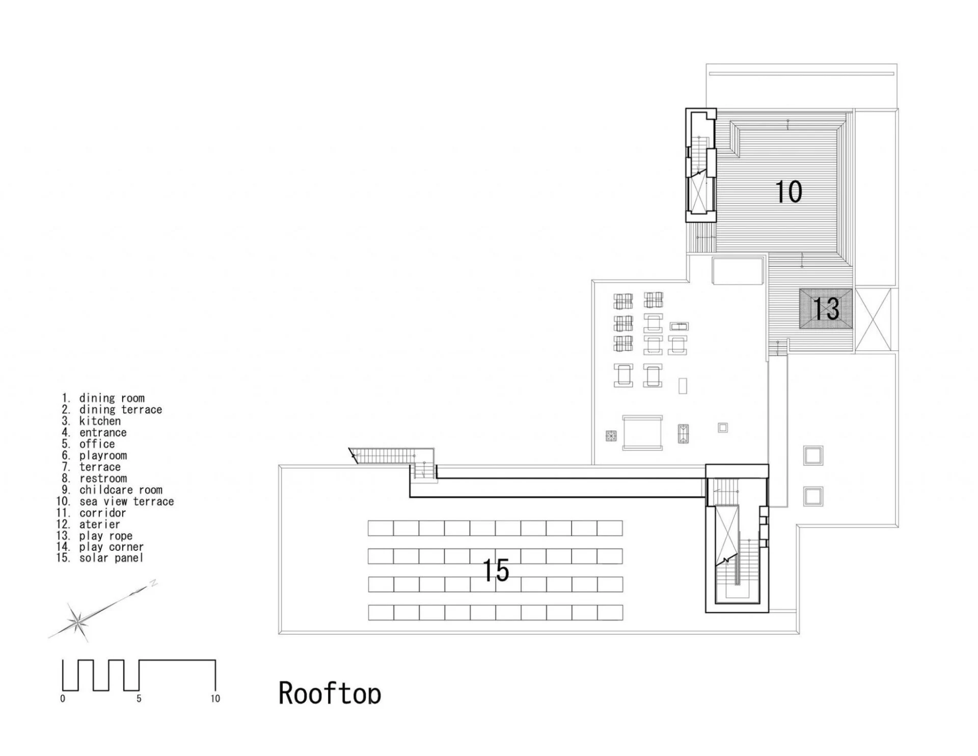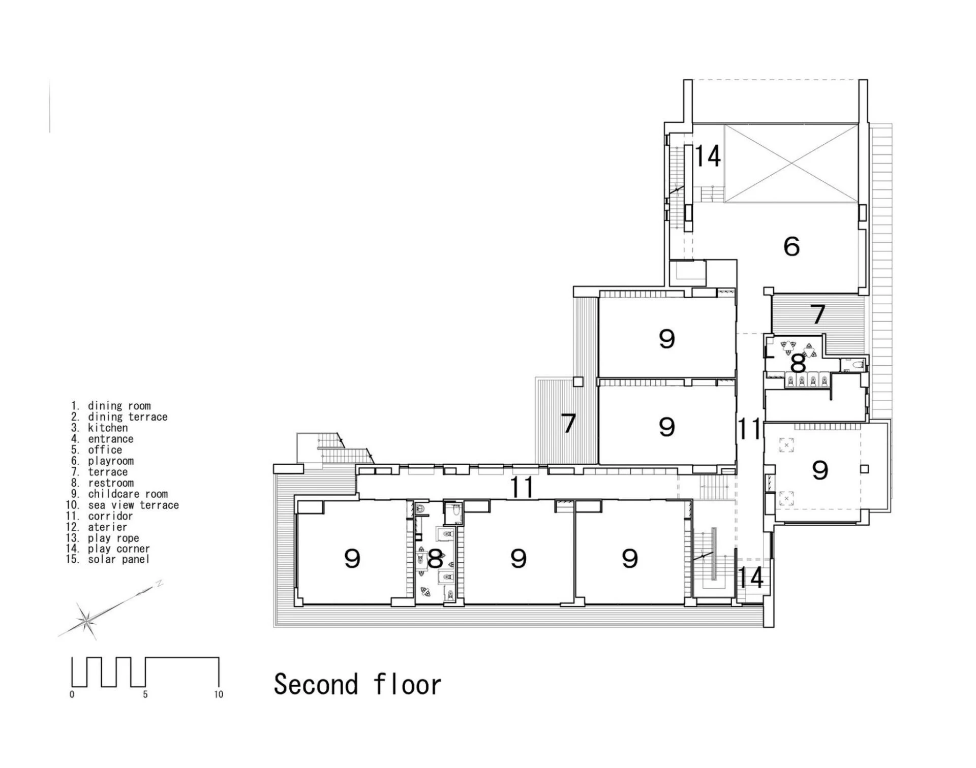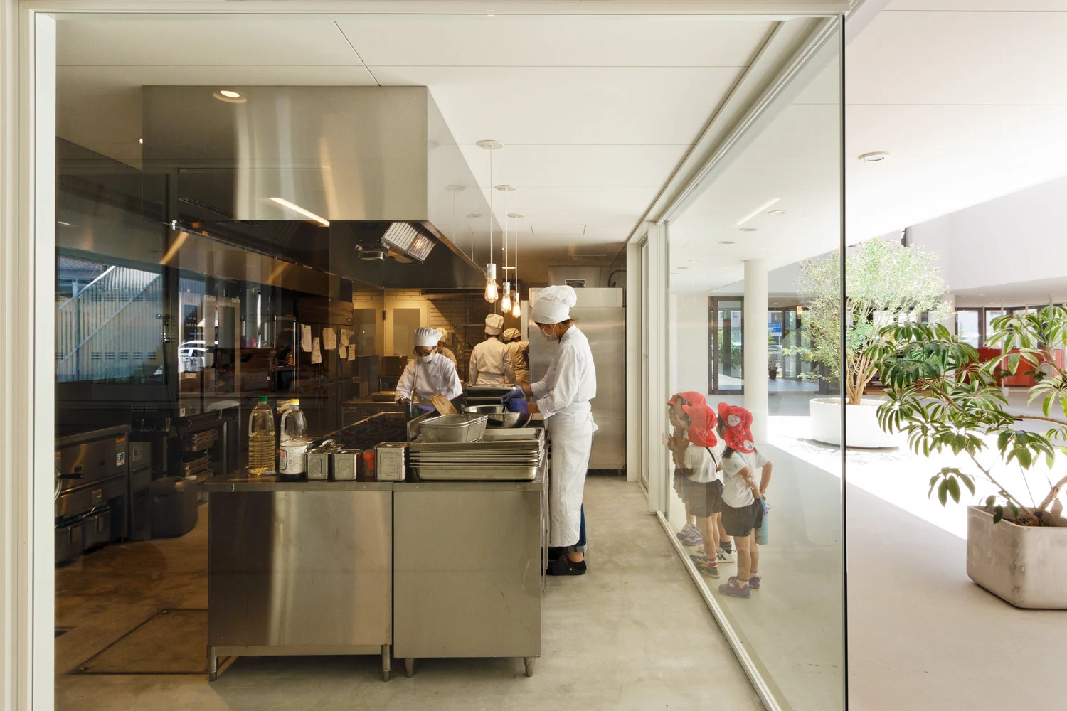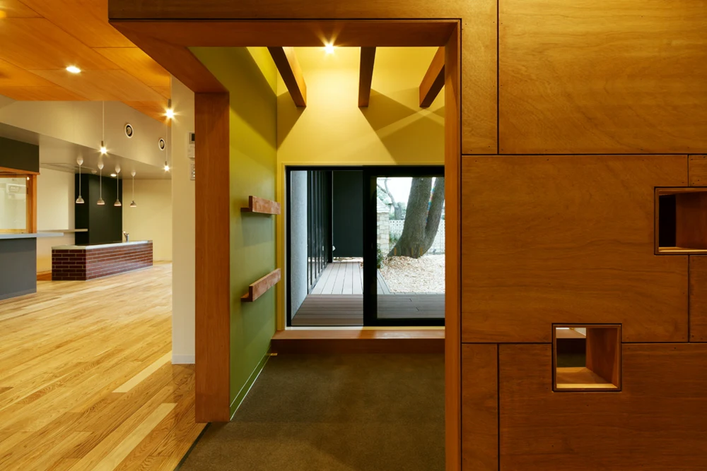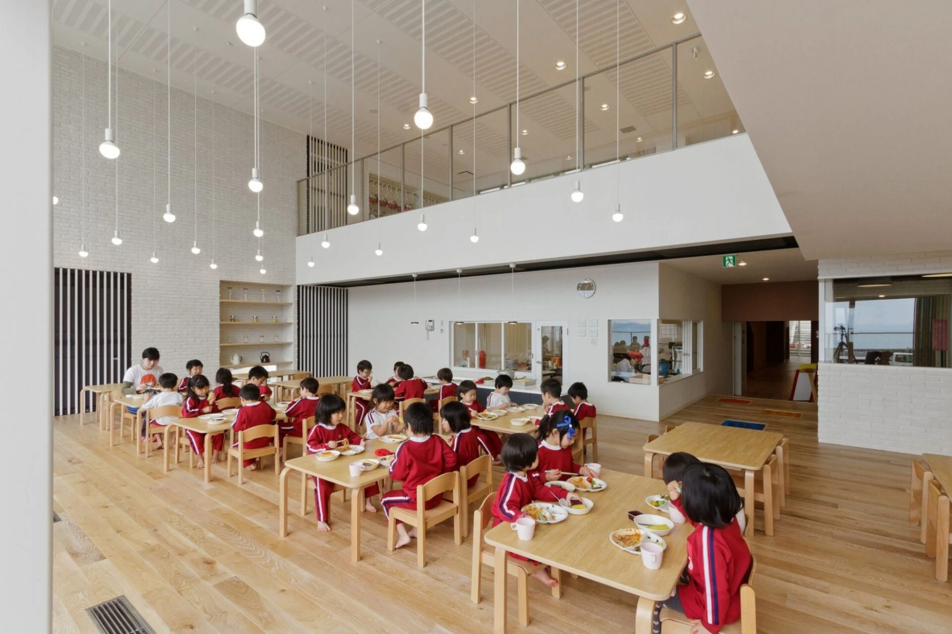 Созданная структура детского сада, открытая для общения, дает возможность погрузиться в домашнюю обстановку и благоприятствует непринужденному общению среди ее обитателей, которые стали всё больше и больше прибывать в этот детский оазис. К примеру, кафе было смоделировано в виде энгавы, это элемент традиционных японских домов, на подобие веранды.
