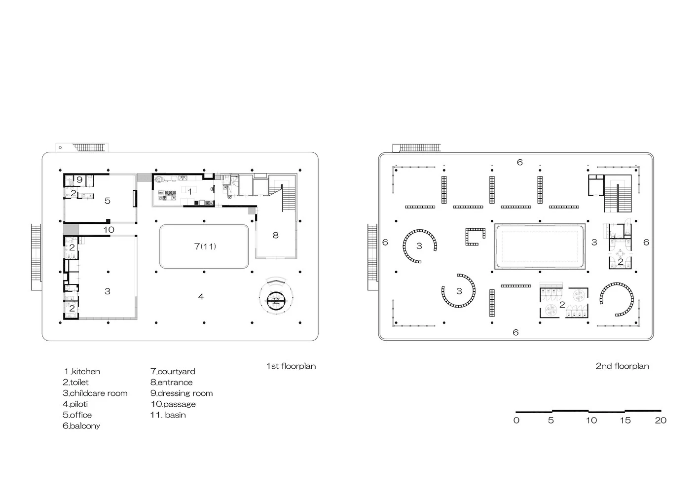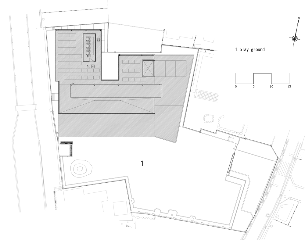 Нам было предложено изменить детский сад на тип здания следующего поколения, который подходит для наших дней, и мы приняли вдохновенно его в разработку. Поскольку в середине существующего здания был большой коридор шириной в пять метров, мы решили проектировать, организовав современное пространство таким образом, чтобы осталась память существующего здания в новом здании.