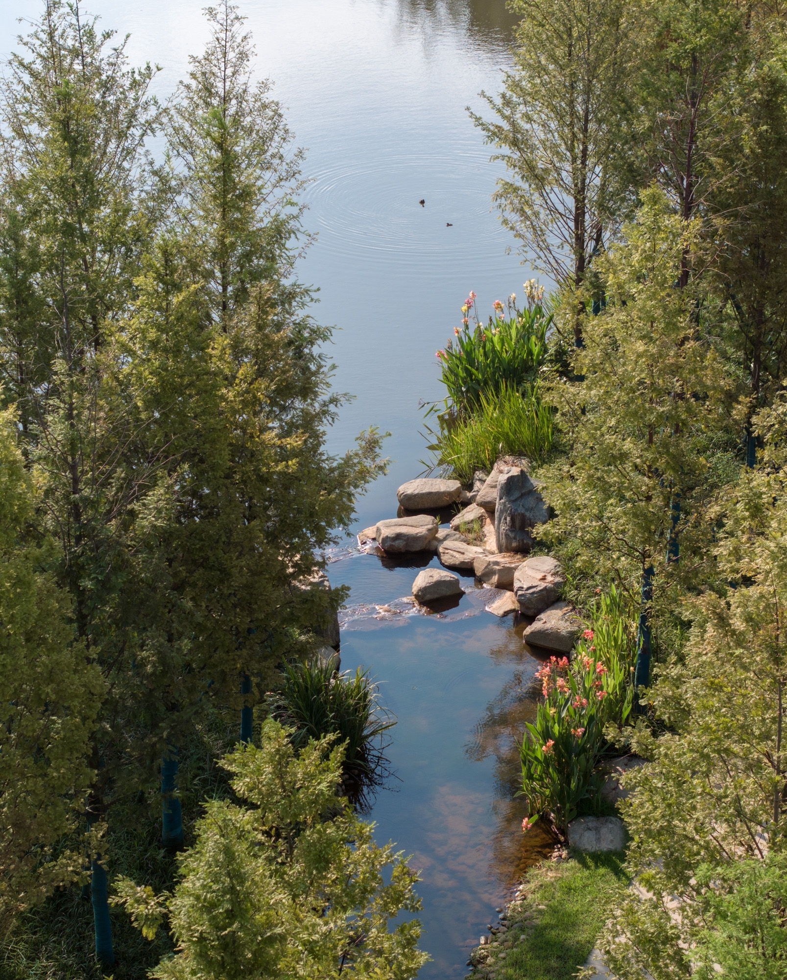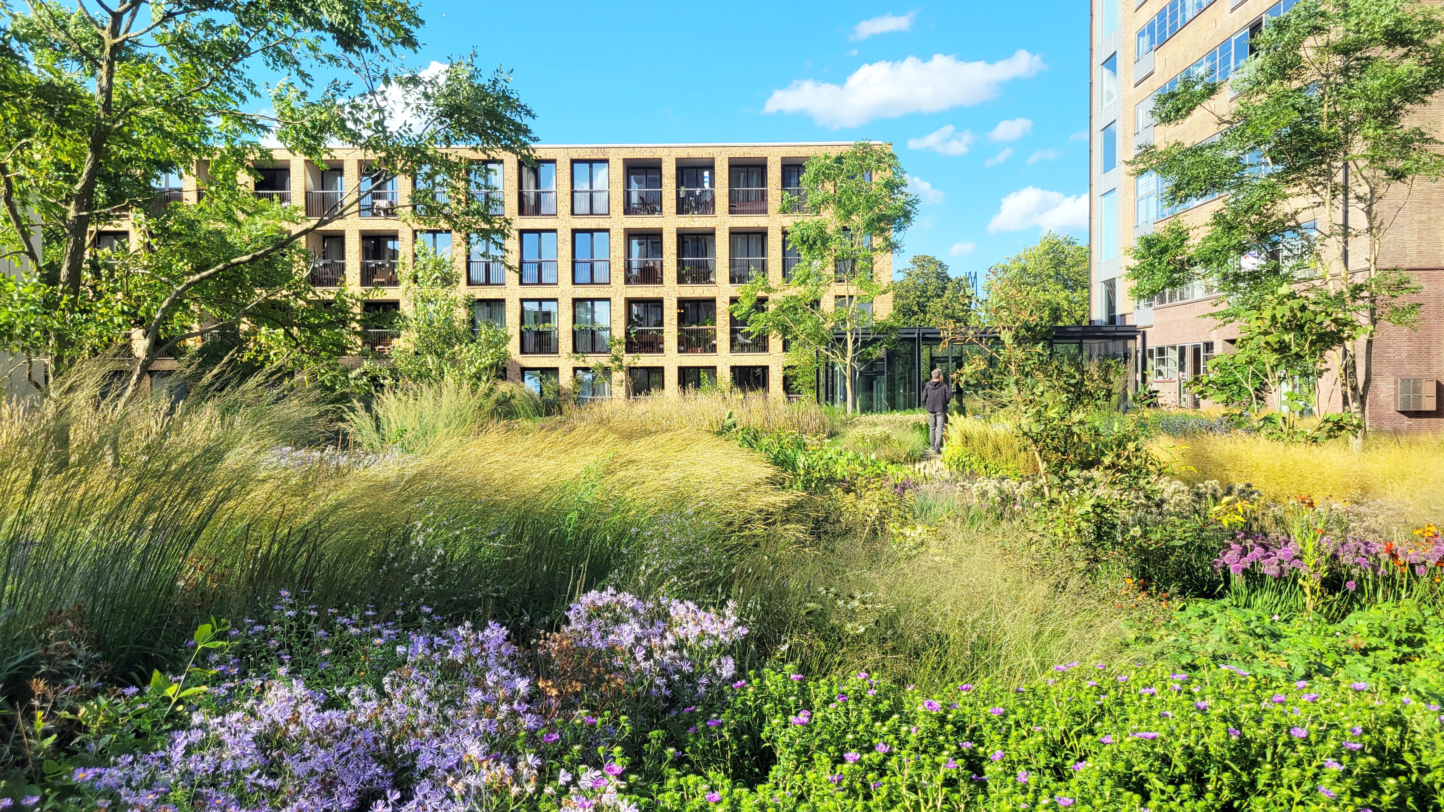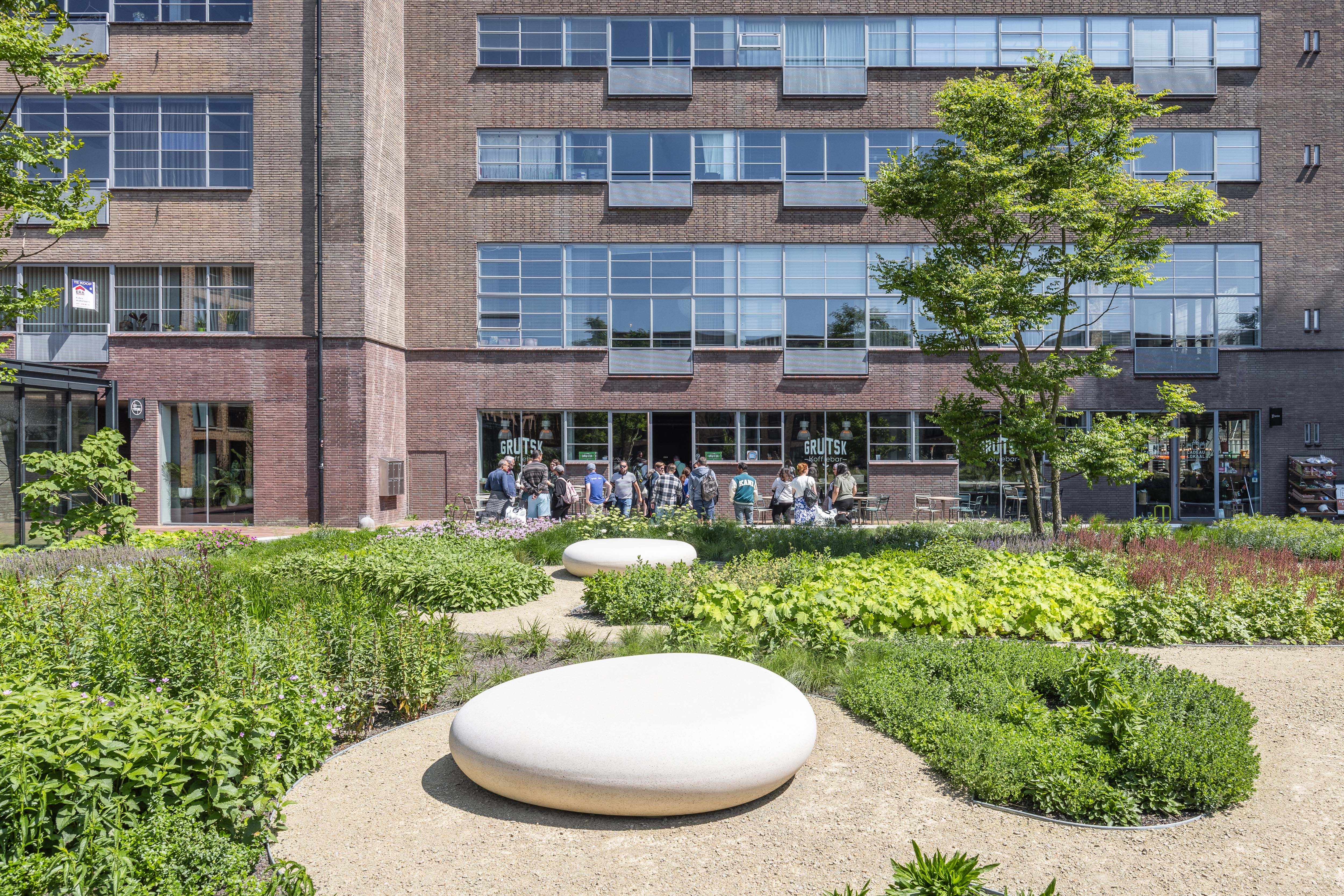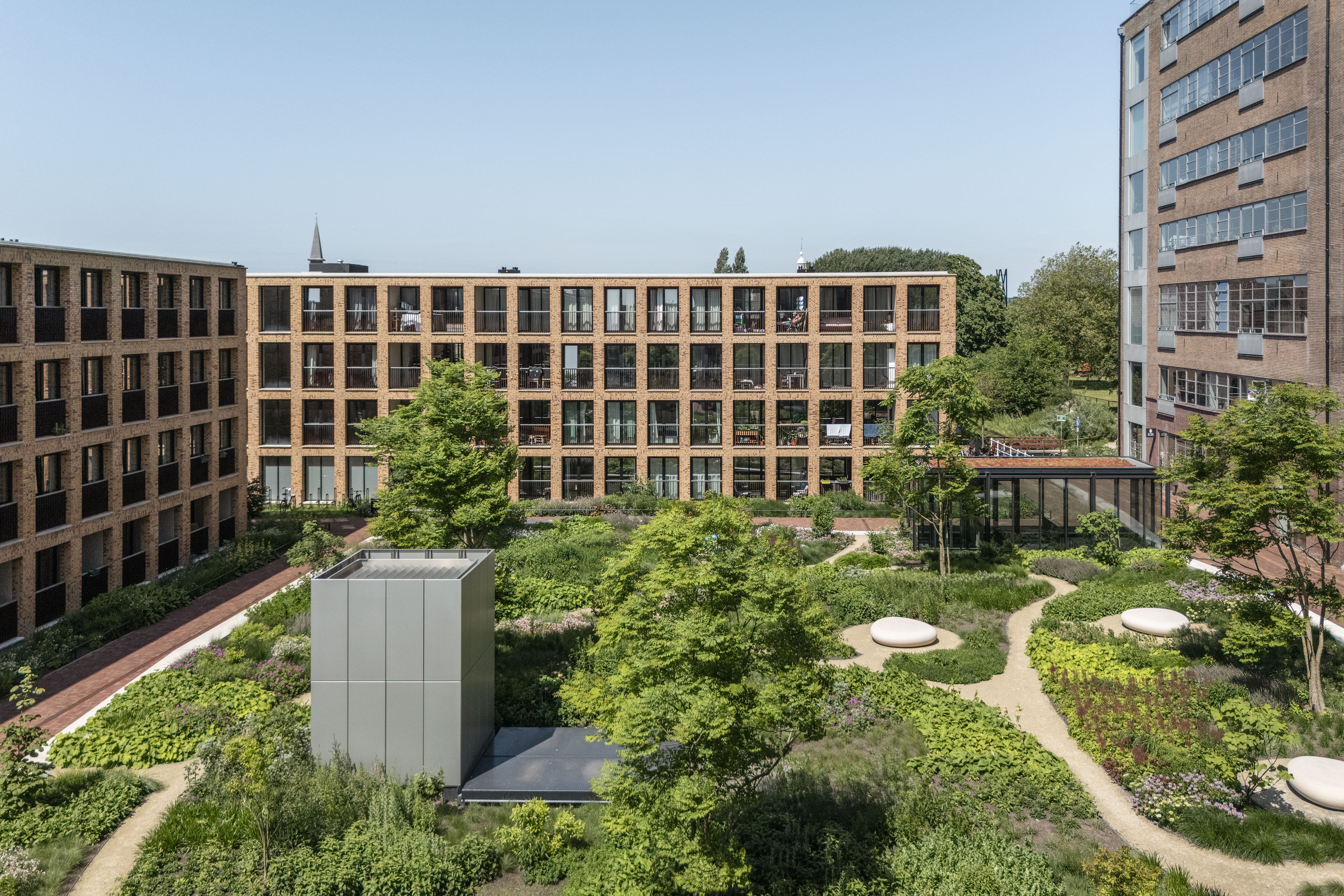 Авторы подошли к пространству как к огромному живописному полотну, высадив тринадцать тысяч растений, которые непрерывно меняют свой облик. Сад, оборудованный скрытой системой сбора дождевой воды, органично вплелся в кольцо городских парков Singelpark, проиллюстрировав, как суровое индустриальное наследие может превратиться в пульсирующее сердце местного сообщества.