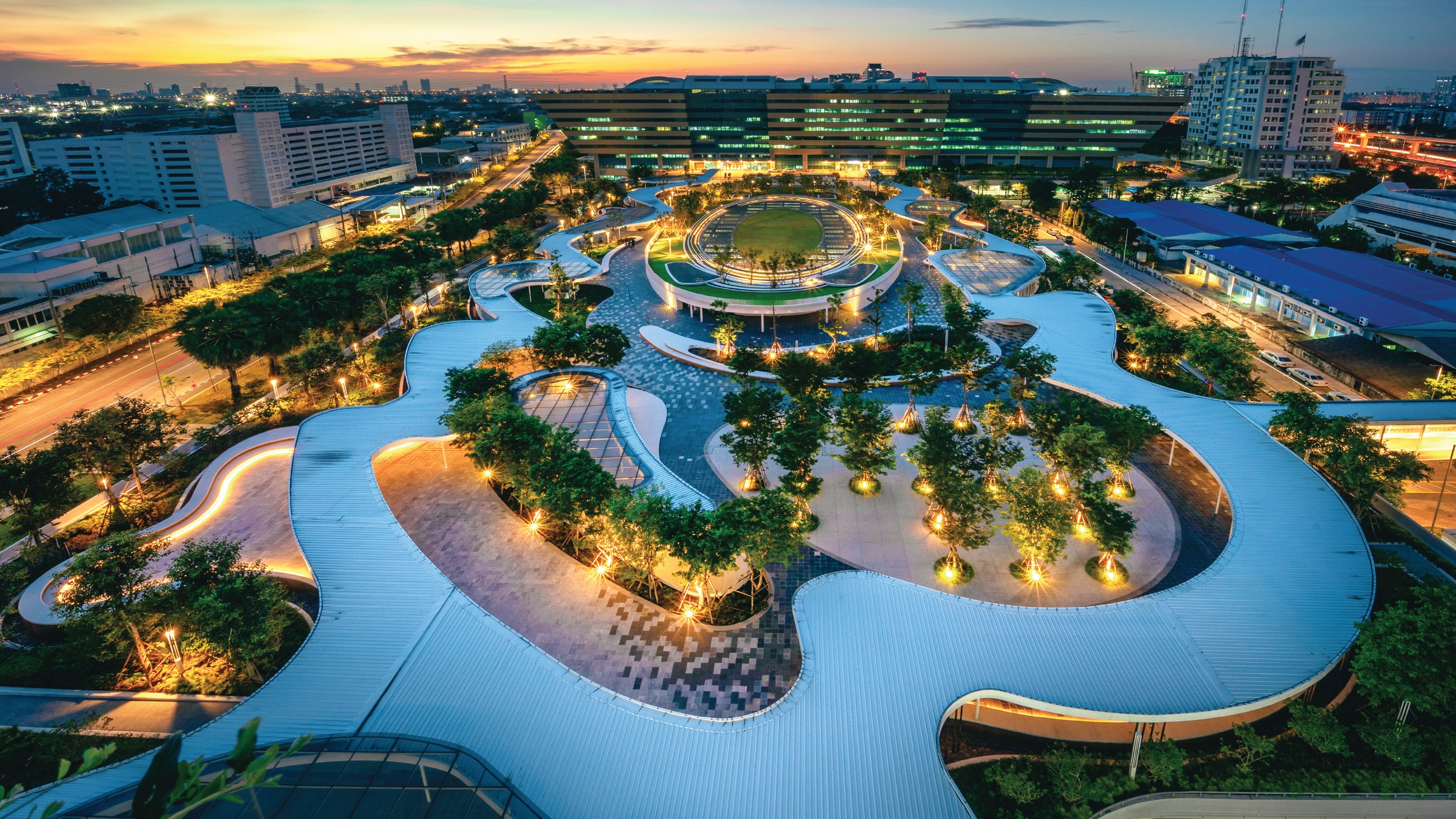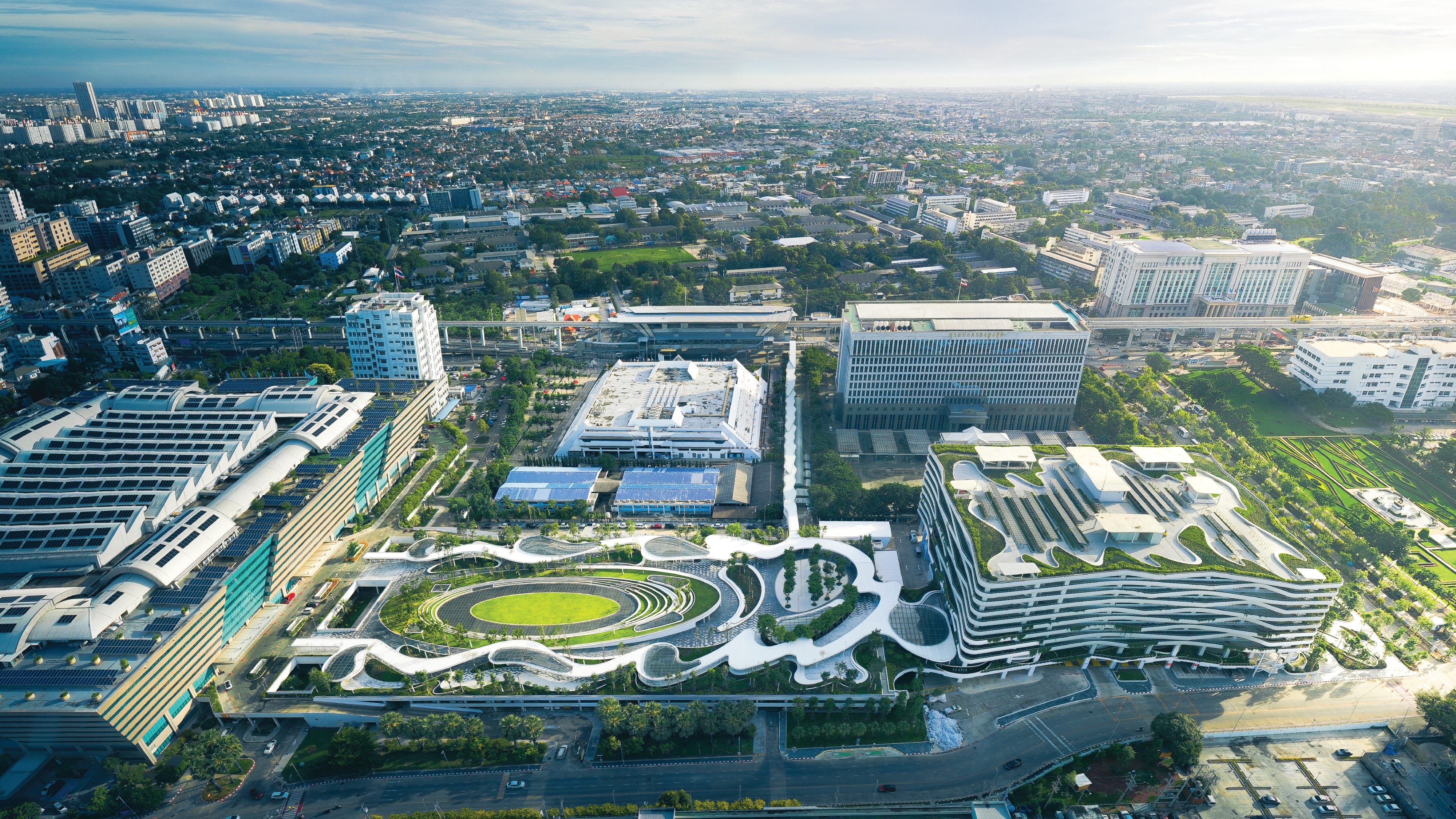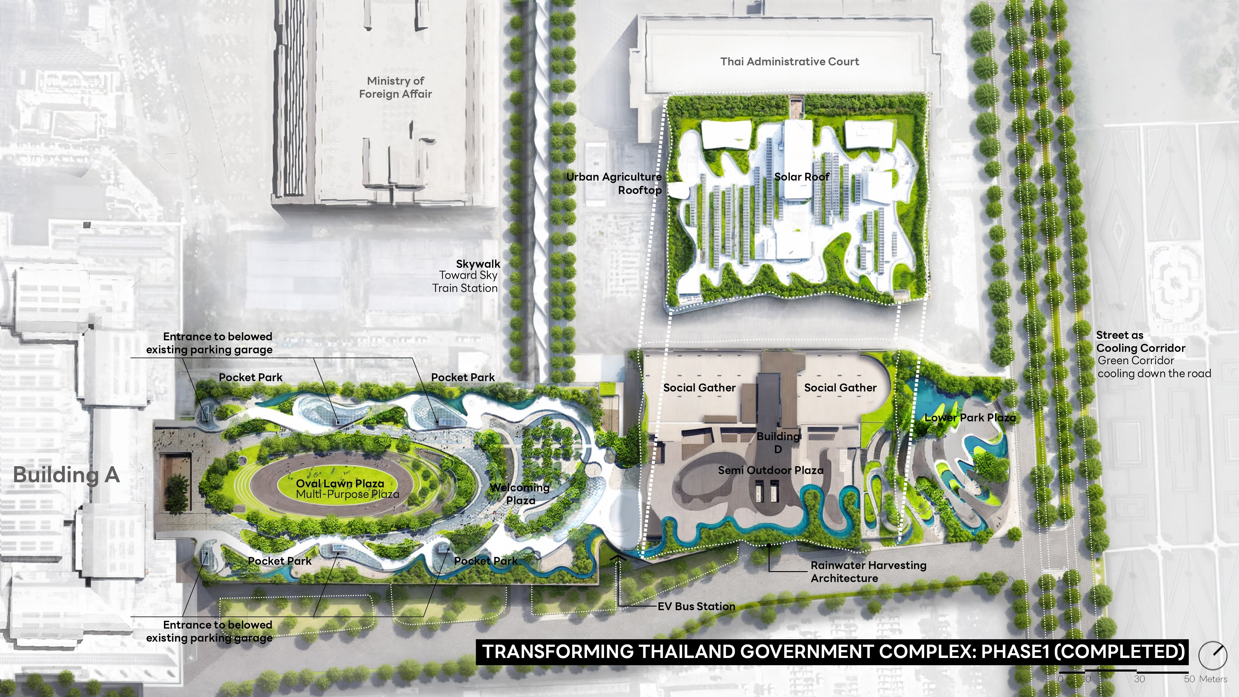 Если в Лейдене и Нью-Джерси архитекторы исцеляли промышленные раны, то проект реконструкции правительственного комплекса в Таиланде (Transforming Thailand's Government Complex), реализованный бангкокской студией Landprocess, предлагает радикальный ответ на вопрос о том, как должны взаимодействовать с обществом государственные органы в XXI веке. На протяжении почти двадцати лет этот масштабный кампус оставался памятником жесткой автомобильной зависимости, залитым бетоном и задыхающимся от городского зноя.