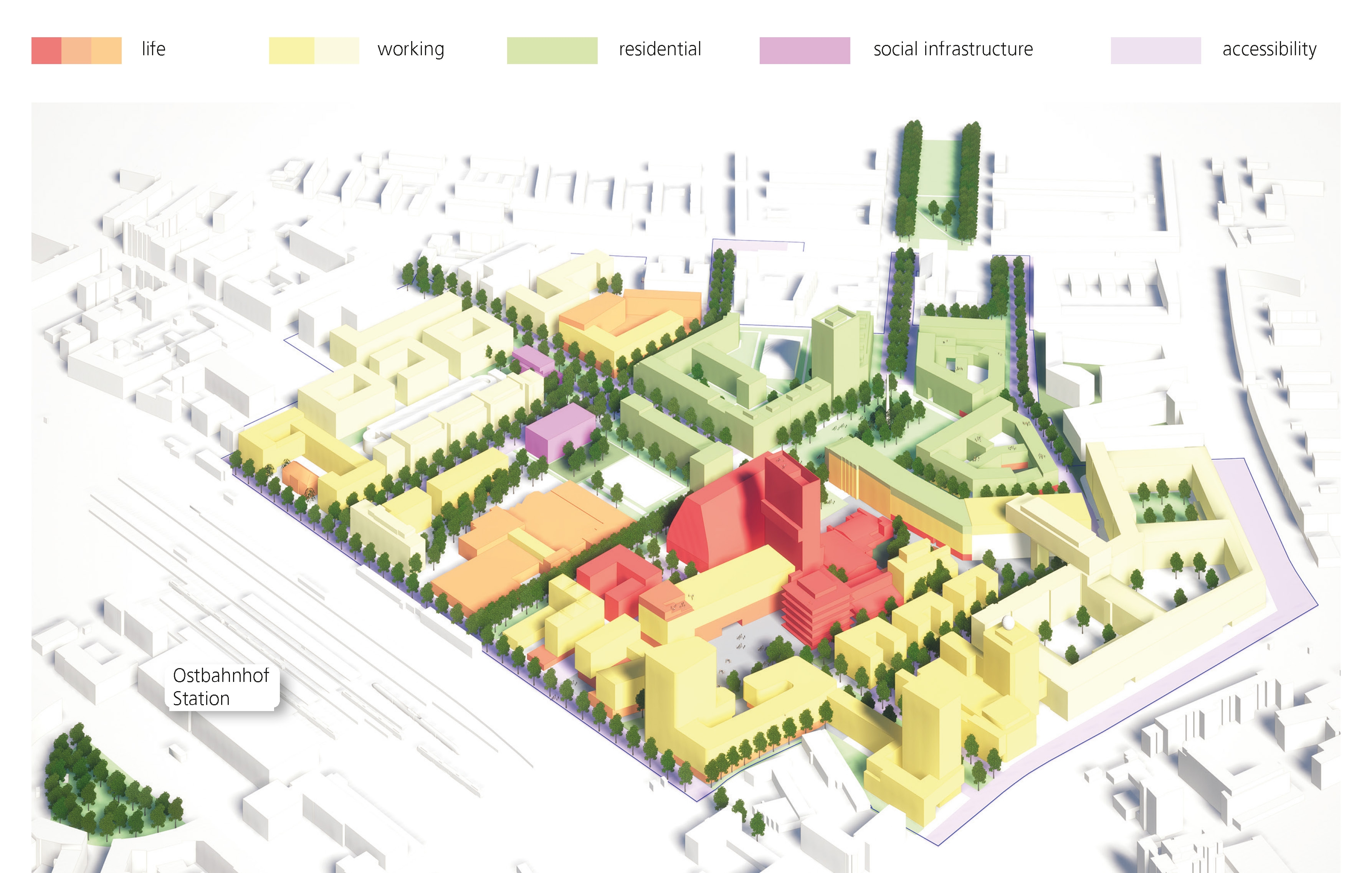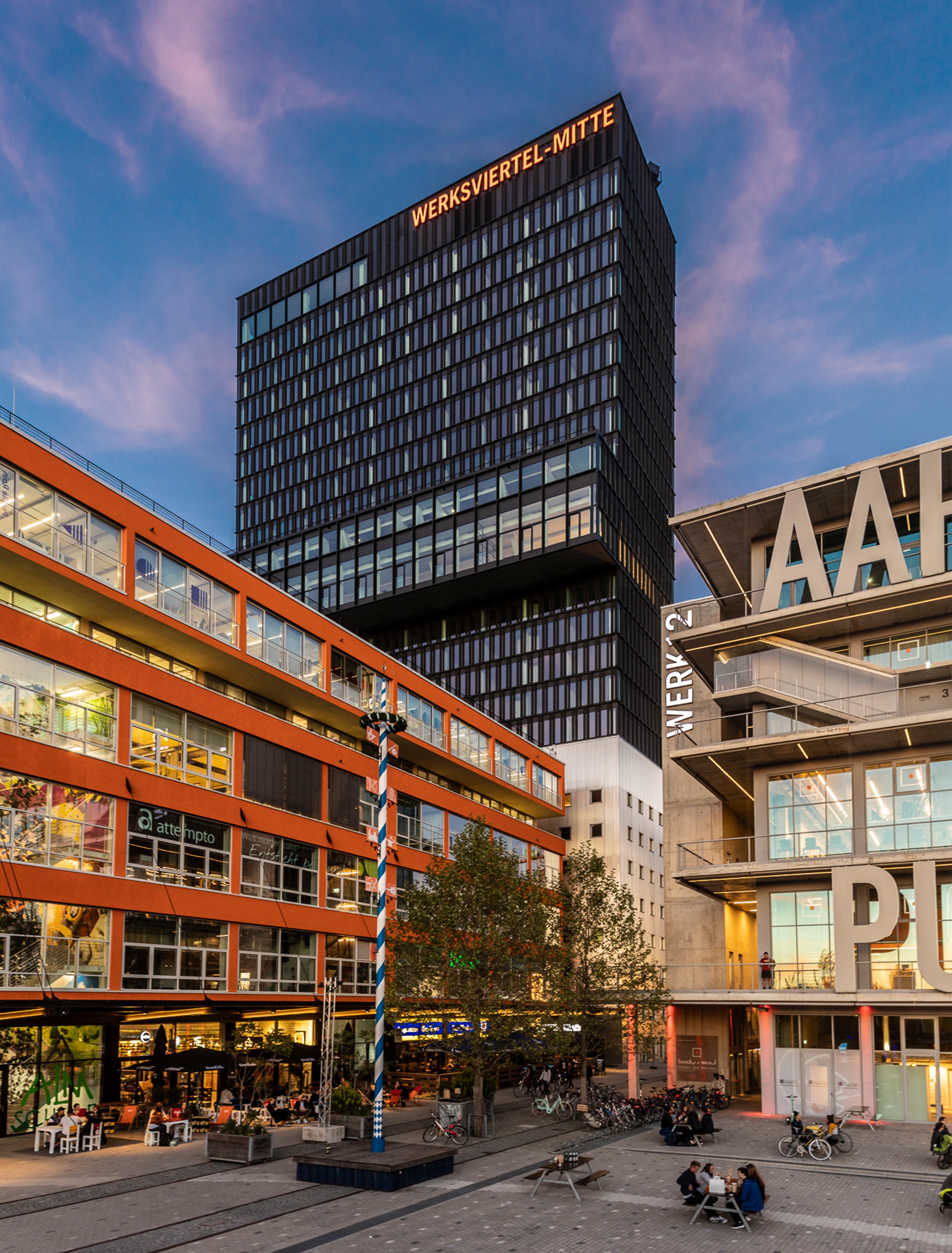 Перемещаясь от масштабных комплексов к плотной ткани мегаполисов, невозможно обойти вниманием проект Werksviertel Munich, созданный немецким бюро Steidle Architekten и признанный эталоном урбанистического дизайна.