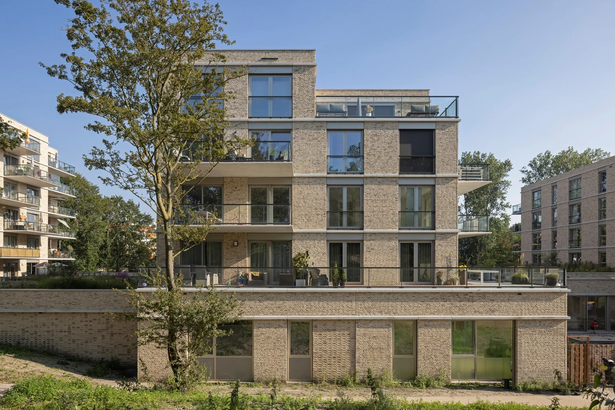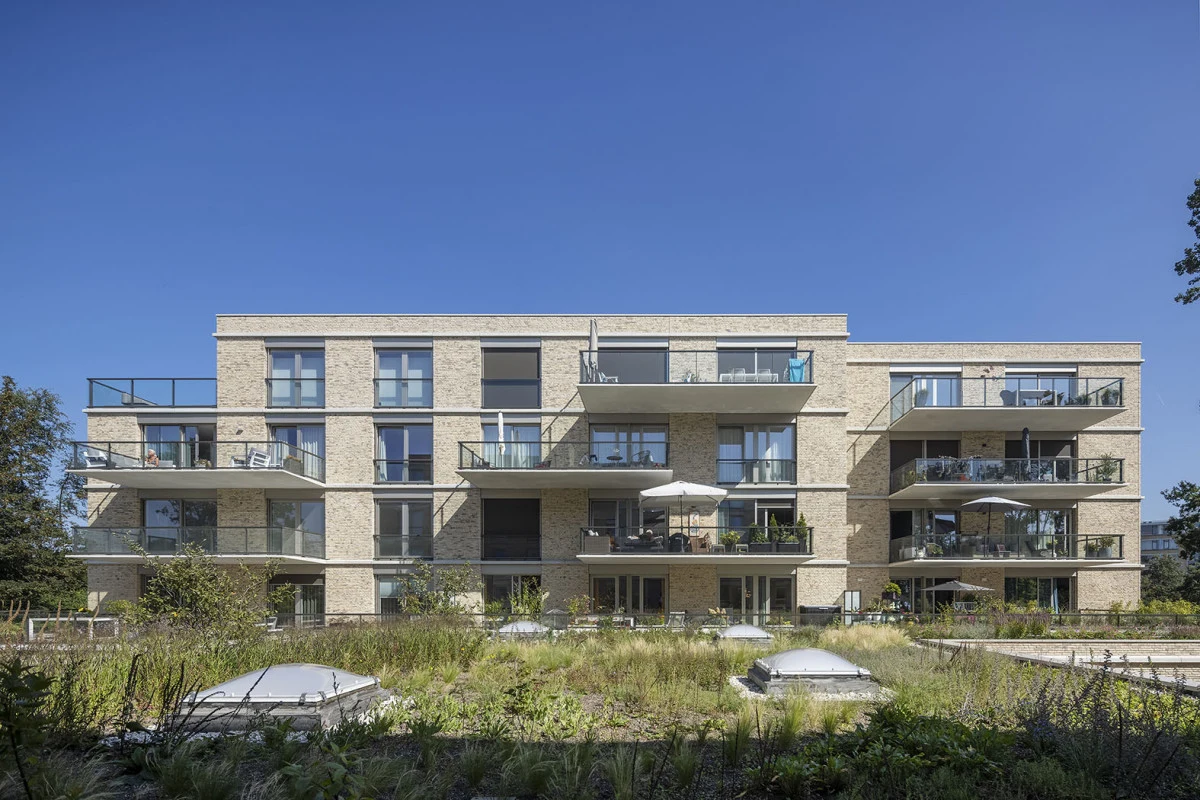 План соответствует богатому контексту ландшафта за счет использования существующих перепадов высот, чтобы скрыть парковку, и расширения зелени на крыши. Важной отправной точкой при проектировании было обеспечение всех квартир оптимальной ориентацией. Максимальный комфорт обеспечивают окна от пола до потолка, улучшающие качество света, пространства и вида. В кратком описании указаны просторные открытые пространства для квартир; есть три различных типа открытых пространств на выбор: балконы, сады на крыше и просторные террасы на крыше в специально разработанных вырезах на верхних этажах.