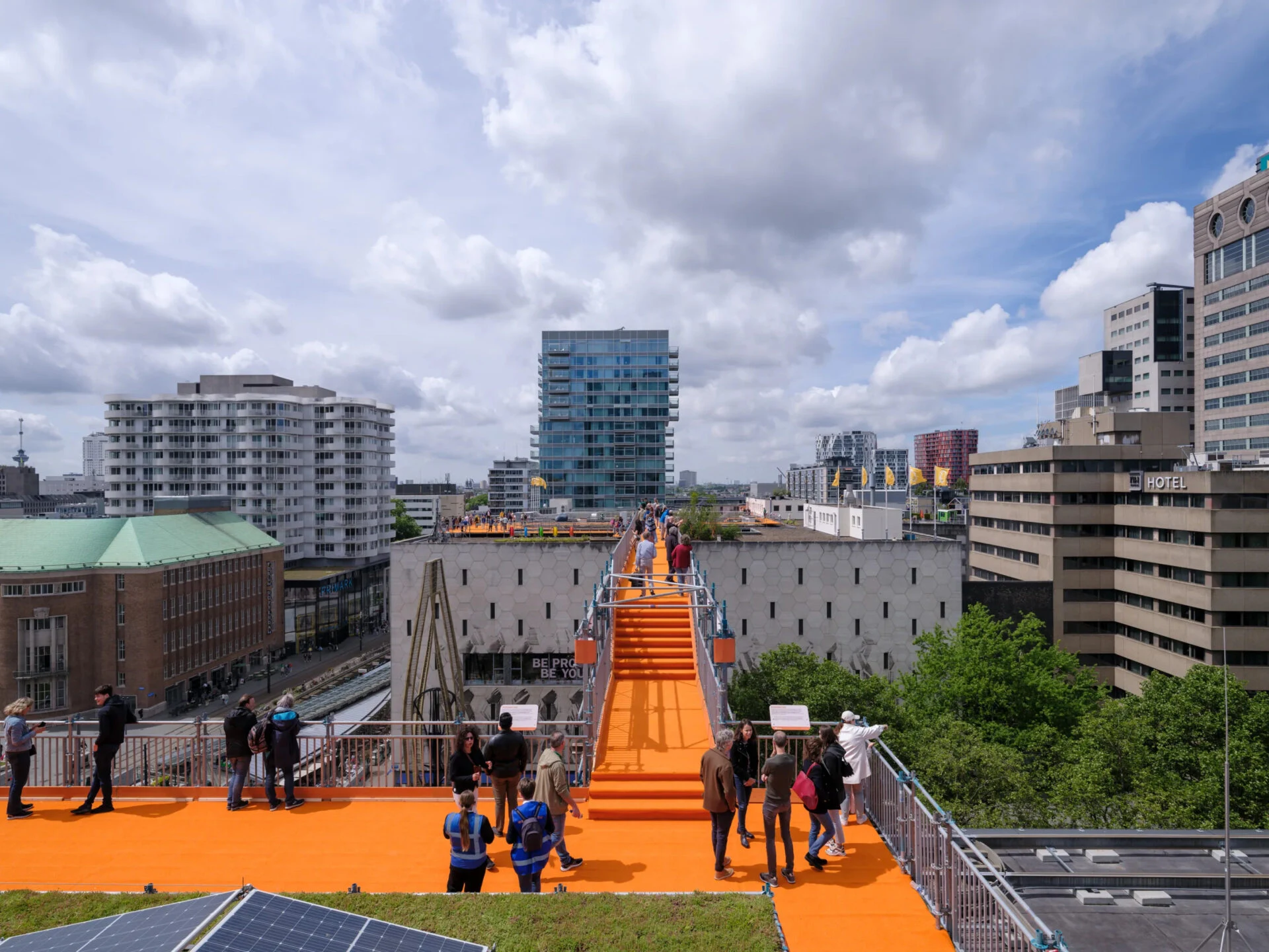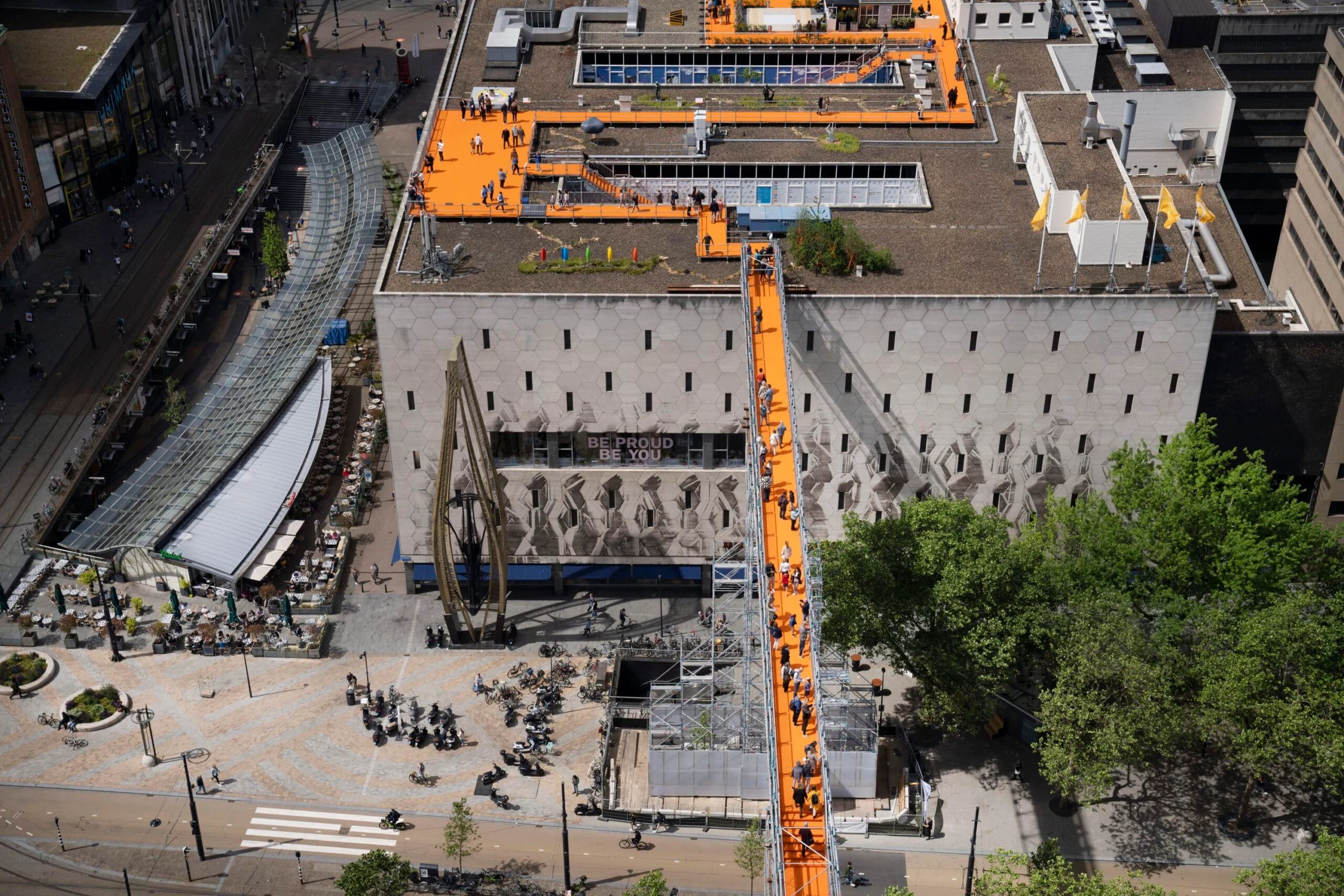 Ярко-оранжевая Rotterdam Rooftop Walk имеет длину 600 метров и предлагает публике фантастический вид на город в течение месяца.