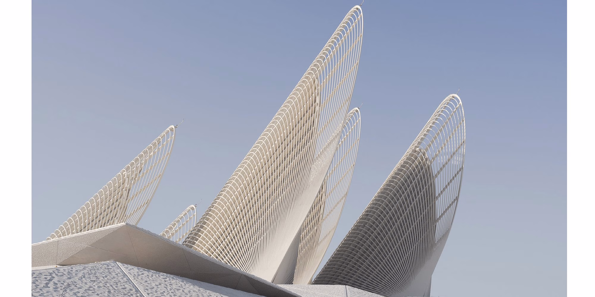 В основе проекта лежит сложная метафора, выраженная в пяти лёгких, скульптурных конструкциях, напоминающих крылья сокола — национального символа ОАЭ и неотъемлемой части бедуинских традиций. Эти башни, достигающие в высоту 125 метров, являются не только эстетической доминантой, но и ключевым элементом пассивной климатической стратегии здания.