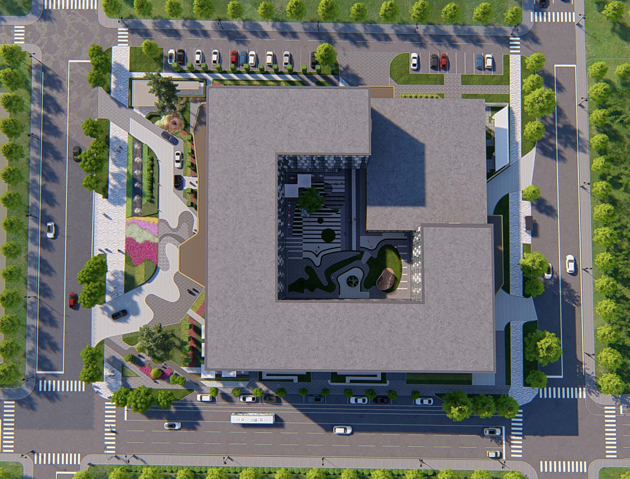 Именно поэтому современное здание, обладающее всеми чертами глобализации, помещается в среду, наполненную историческим и культурным контекстом, где каждому элементу присуще сакральное значение (обоснованность применяемых материалов, элементов озеленения и архитектурных объектов).