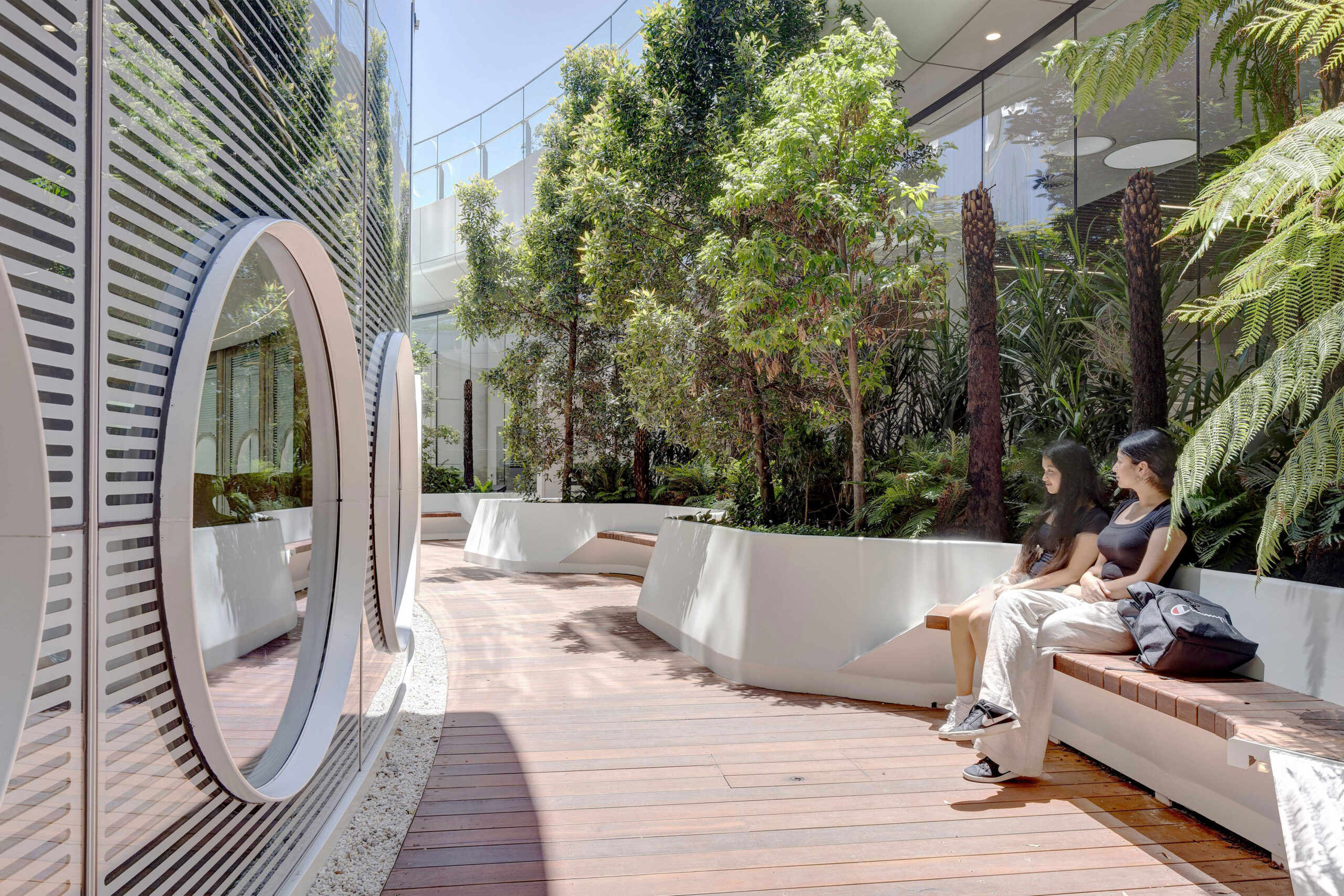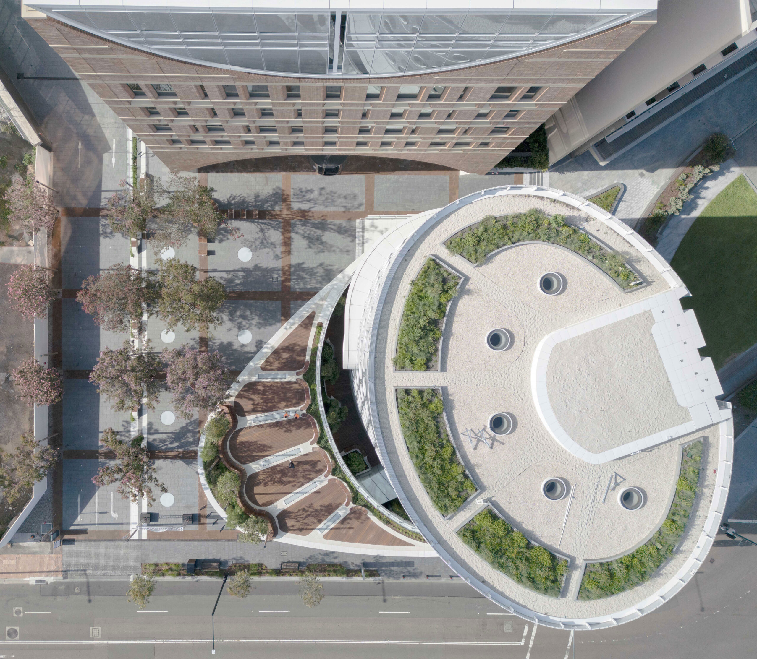 Расположенная в конце обсаженной деревьями улицы Macquarie Street, изогнутая форма привлекает людей на юг, приглашая пешеходный поток и движение вокруг неё и через новое, пригодное для прогулок озеленённое пространство к гостеприимным входам в здание Civic Building и библиотеку, а затем на улицу Terminus Street. Расположенные вдали от уличного шума и предлагающие безопасные места для встреч, отдельные два входа создают отдельные, но взаимодополняющие идентичности. Большая арка здания гражданской администрации отдаёт дань наследию местной застройки Гринвея, расширяя геометрию открытого пространства в фойе и соединяя с интегрированными залами заседаний совета наверху.