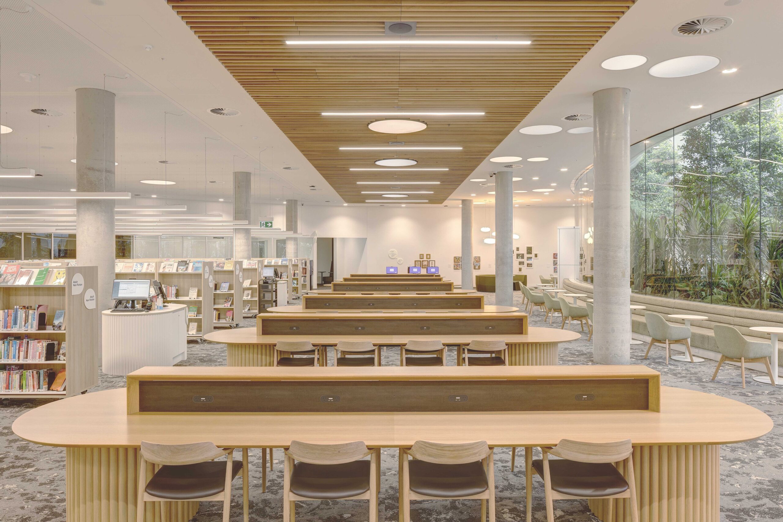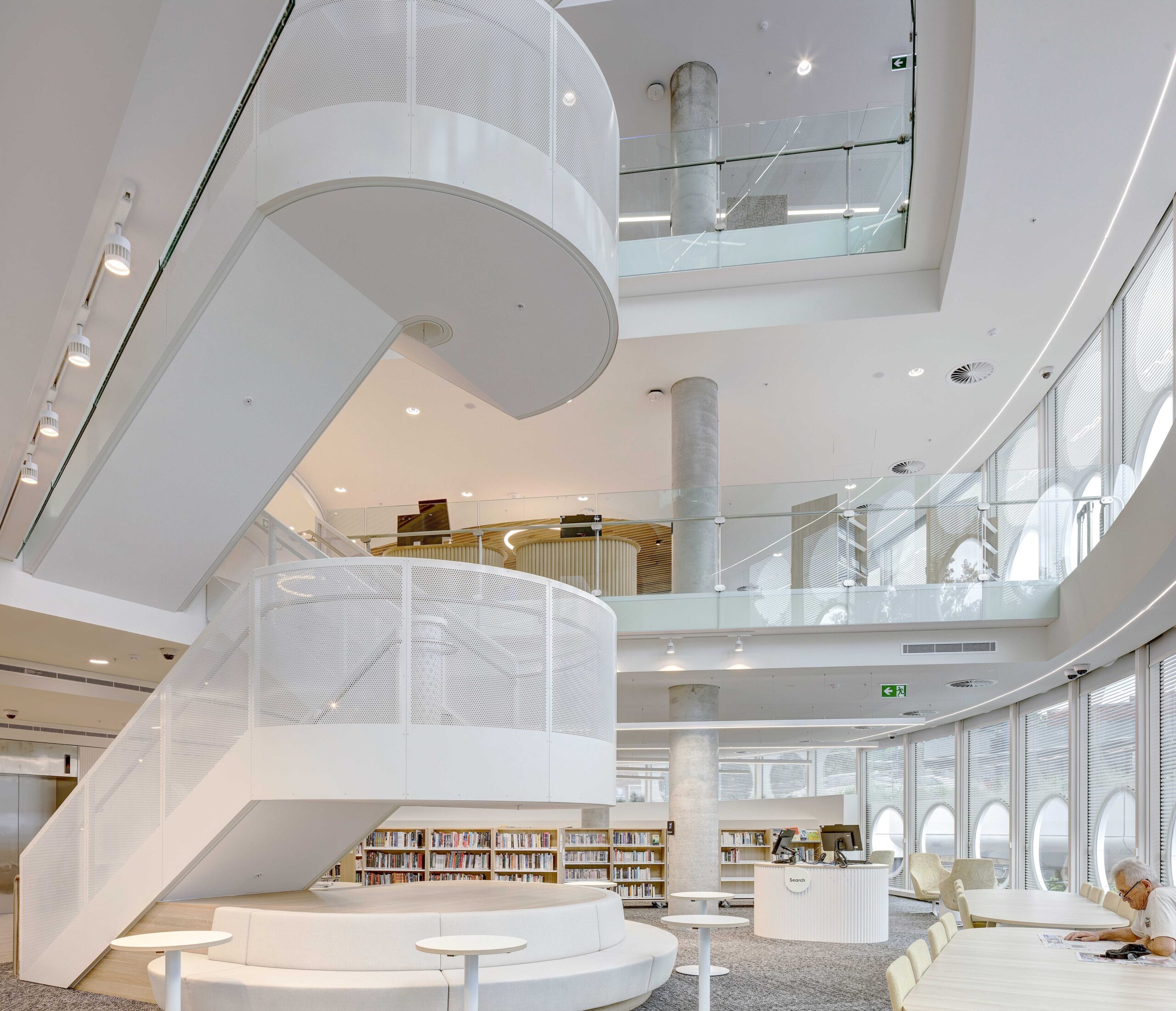 Новая криволинейная библиотека Yellamundie вдохновлена ​​течением реки. Как её поддерживающая дуга создаёт водовороты, одновременно спокойные и динамичные, так и слои и поток новой библиотеки создают разнообразные пространства для всех.