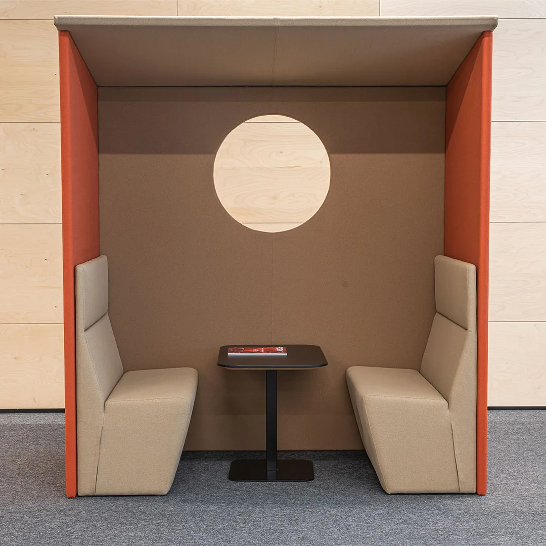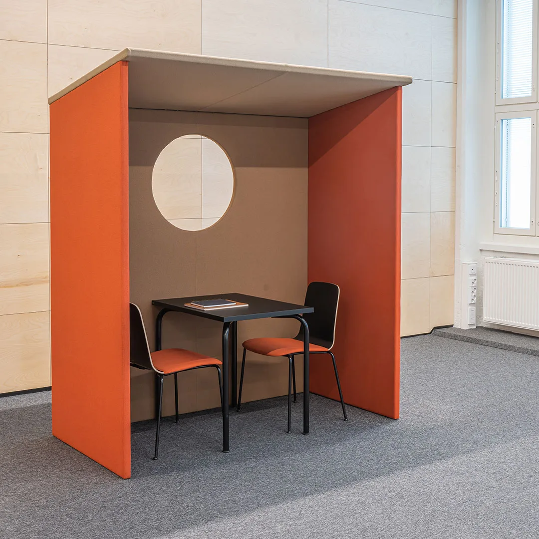 Дизайн Petteri Häkkinen & ISKU Team Nest – это увлекательное пространство, предоставляющее зону для учебой или работы с хорошей акустикой. Это решение в форме кабины работает как разделитель пространства, в котором вы сможете уединиться, находясь в общественном месте. Каркас Nest изготовлен из фанеры. Огнестойкая пена действует как акустический элемент. Боковые стены, задний фон и крыша могут быть выбраны разных цветов. Nest доступен с одним или двумя диванами, или просто в виде кабины без мягко