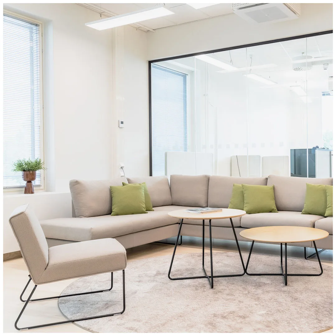 Solt – изящный дизайнерский стол в современном скандинавском стиле. Стол доступен в двух вариантах высоты и в разных материалах. В линейку продуктов Solt также входят мягкое кресло и подставка для ног.