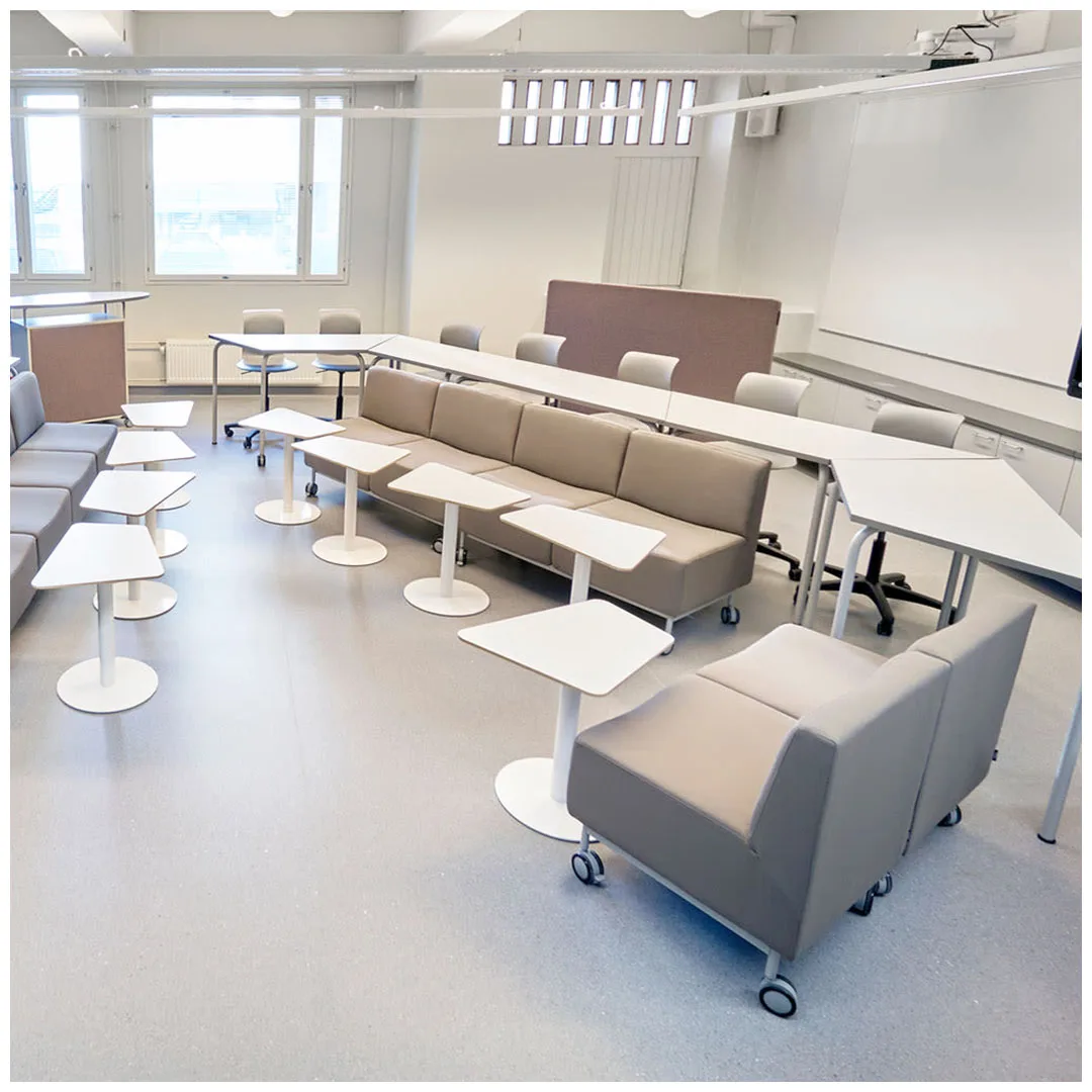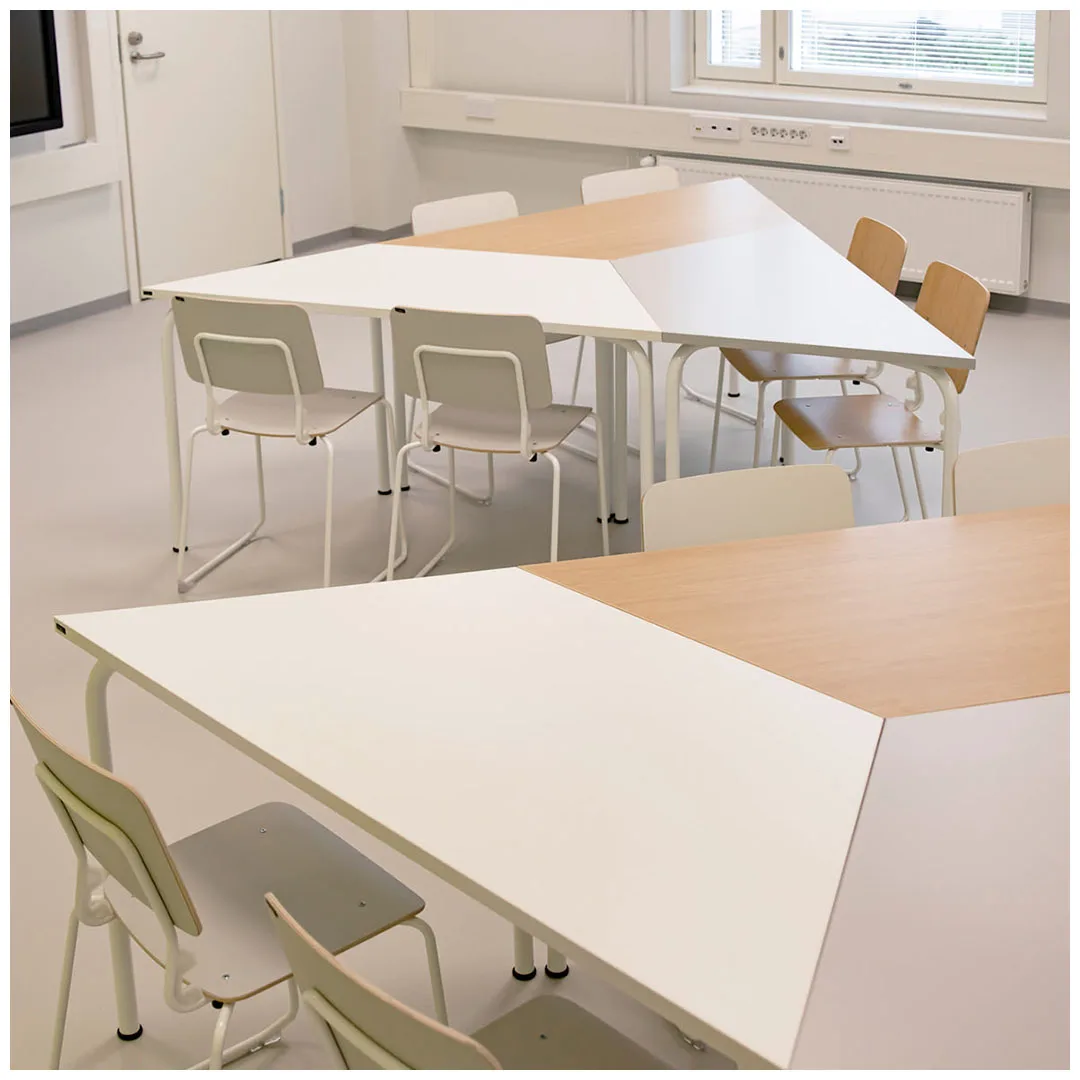 Стол Summa GR эффективно использует пространство благодаря своей форме и размеру. Столы GR особенно хорошо подходят, когда столы необходимо объединить в различные виды групповых рабочих мест. Форма столешницы – одна из особенностей стола GR. С каждой стороны стола достаточно места для работы.