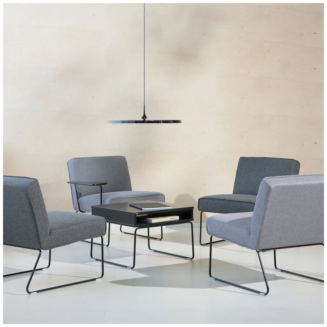 У небольшого журнального столика Tere есть полка для хранения журналов. Столик хорошо подходит для вестибюлей, холлов и залов ожидания. Журнальный столик Tere разработан специально для диванов и кресел из коллекции Tere. В то же время он прекрасно сочетается с любой мебелью на металлическом каркасе.