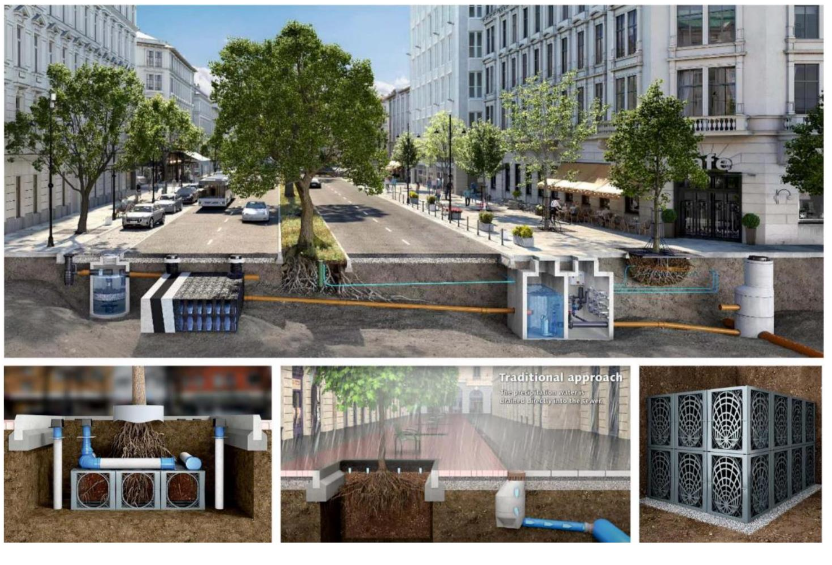 Система устойчивого дренажа предполагает замену асфальта на зеленые зоны, которые естественным образом поглощают дождевую воду, уменьшают нагрузку на ливневую канализацию и предотвращают затопления. Такой подход улучшает экологию, способствует фильтрации воды и создает более комфортную городскую среду.