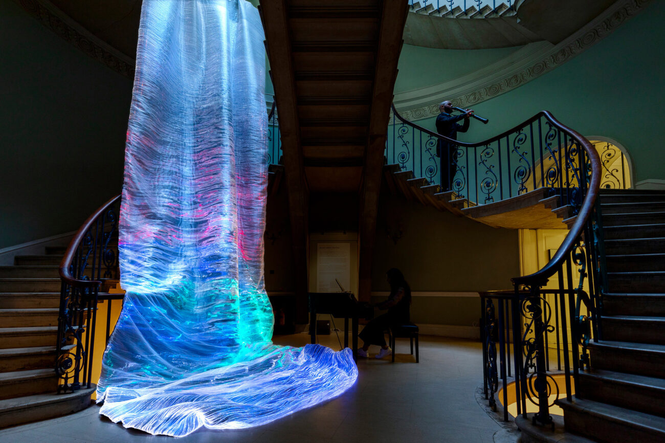 Инсталляция представляла собой впечатляющий текстильный водопад, расположенный на фоне лестницы Нельсона в Сомерсет-Хаусе, спроектированной в нео-палладианском стиле шведско-шотландским архитектором сэром Уильямом Чемберсом. Посетителям было предложено слушать музыку, надевая наушники для ЭЭГ (электроэнцефалограммы), которые регистрировали их мозговые волны и визуально транслировали их в цвете и освещении на тканевую инсталляцию. Они также были преобразованы в живые природные звуки, такие как пение птиц или течение рек, чтобы способствовать расслаблению за счет мультисенсорного взаимодействия.