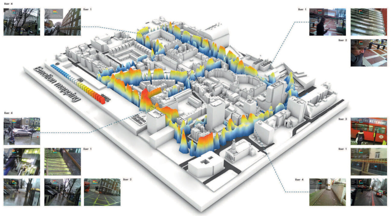 Этот проект был направлен на научное отслеживание такой, казалось бы, субъективной вещи, как настроение участника, когда он прогуливается по меняющейся городской среде. Не отрицая субъективности нашего опыта, можно сопоставить и согласовать некоторые общие реакции на архитектурные модели – как показывают полученные диаграммы.