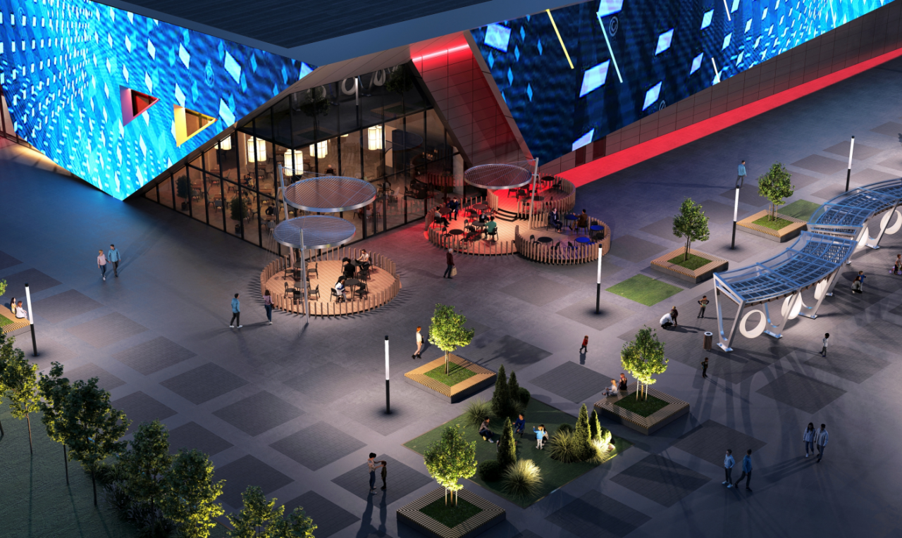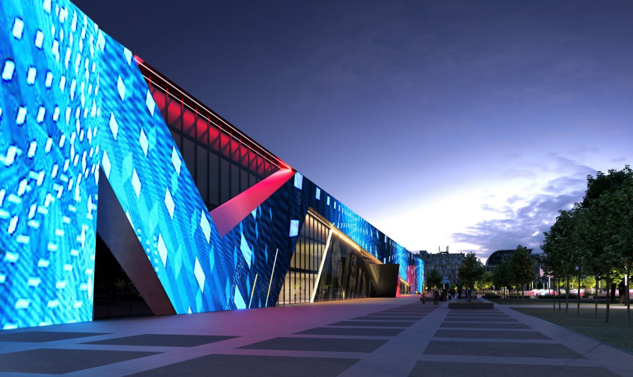 - Ледовые зоны: Проект включает конькобежную дорожку длиной 400 метров, а также две стандартные хоккейные площадки и три площадки для керлинга.