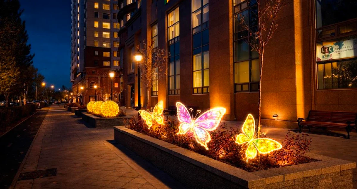 Гуляя по улицам, невозможно будет не заметить, как оживают привычные здания. Городской дизайн-код деликатно интегрирован в архитектуру: фасады школ, детских садов и даже обычные автобусные остановки украсят цветочными композициями и тематическими паттернами. К созданию весеннего настроения активно подключился и бизнес. Крупнейшие отели, такие как Hilton, St. Regis и Radisson, а также торгово-развлекательные центры преобразят свои входные группы яркими инсталляциями, цветами и светящимися бабочками. На ключевых магистралях, включая мост по проспекту Мангилик Ел и улицу Сыганак, появится атмосферная вечерняя подсветка деревьев и интересные малые архитектурные формы.