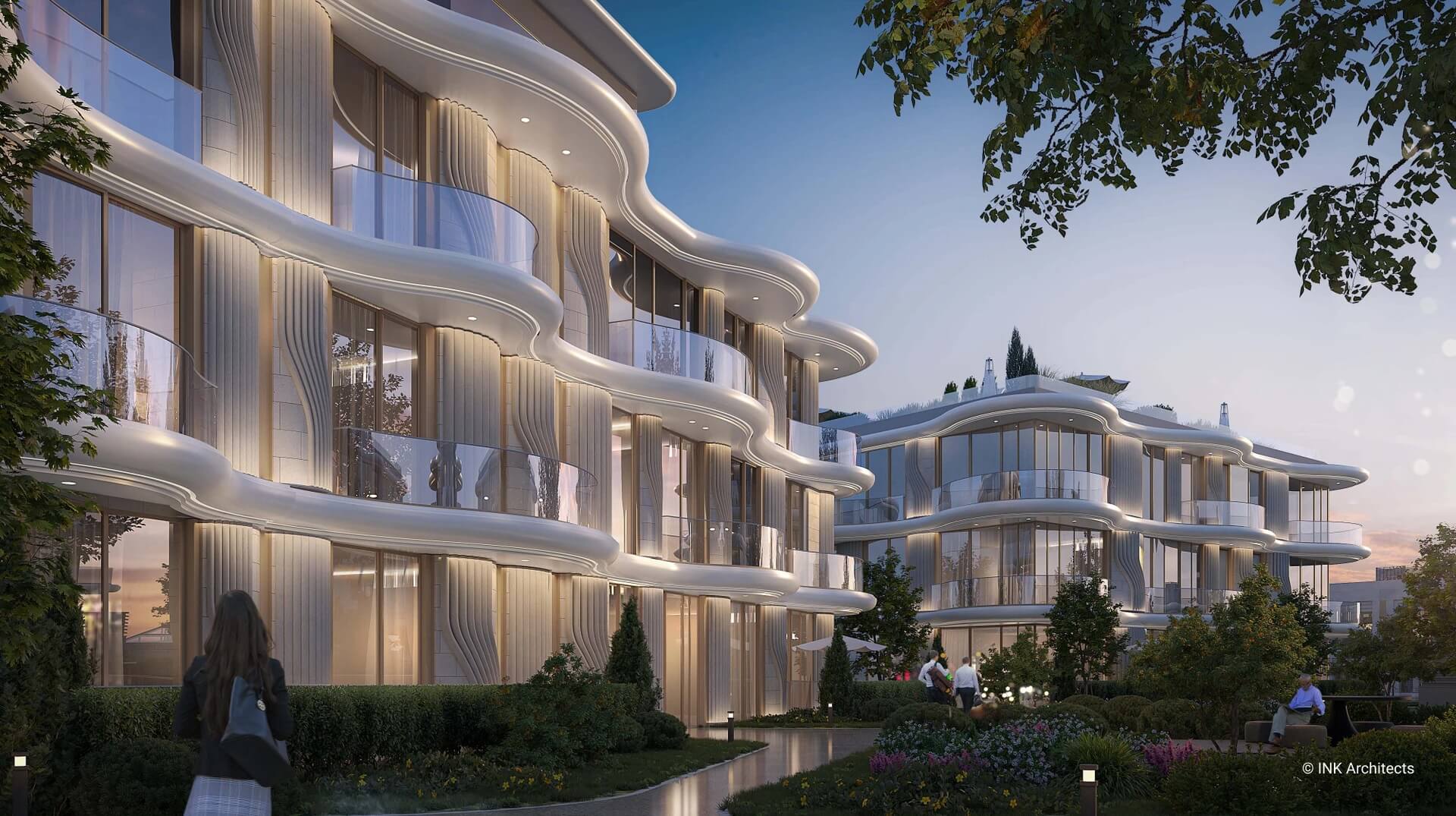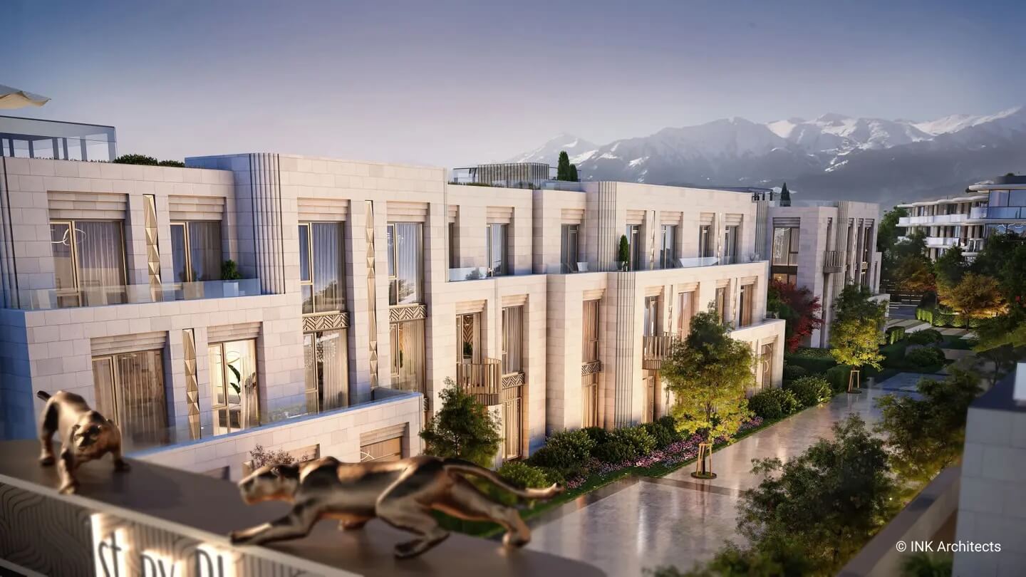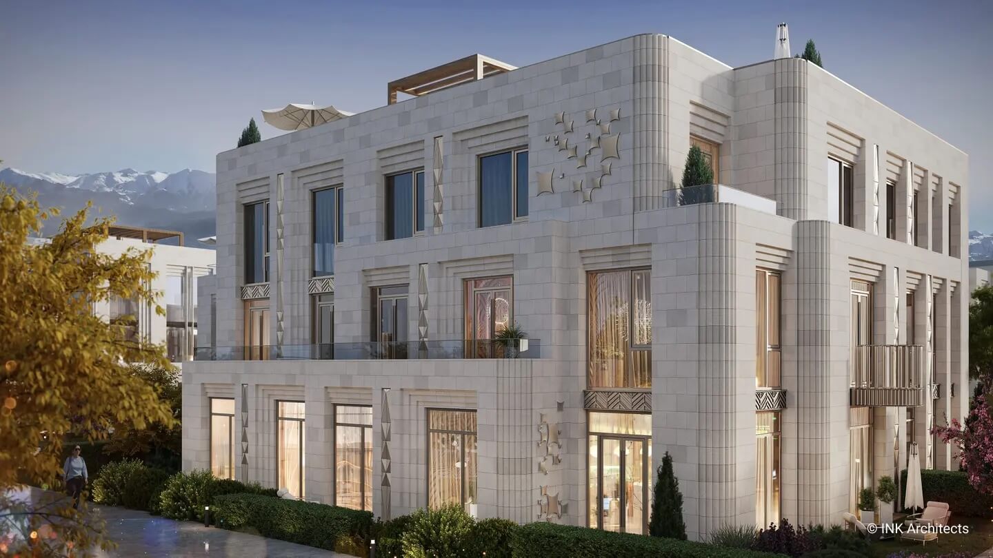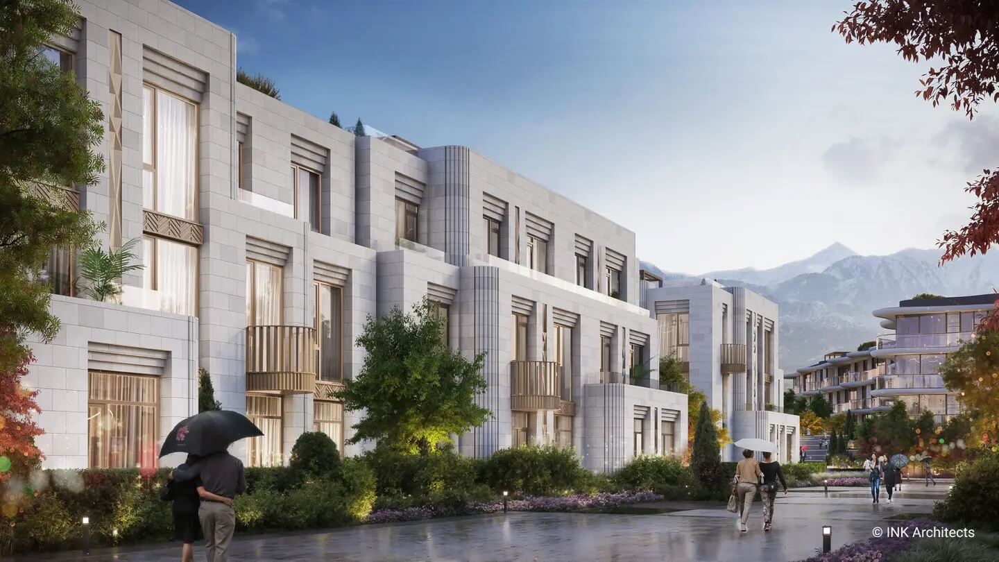 Этот проект от INK Architects меняет привычный ландшафт верхней части Алматы. Главная идея — превратить участок вдоль оживленного проспекта не в очередной «спальник», а в мультифункциональный район-парк. Архитекторы сыграли на смелом контрасте: строгая неоклассическая геометрия здесь переплетается с живыми, плавными линиями бионики, создавая уникальный характер каждого блока.