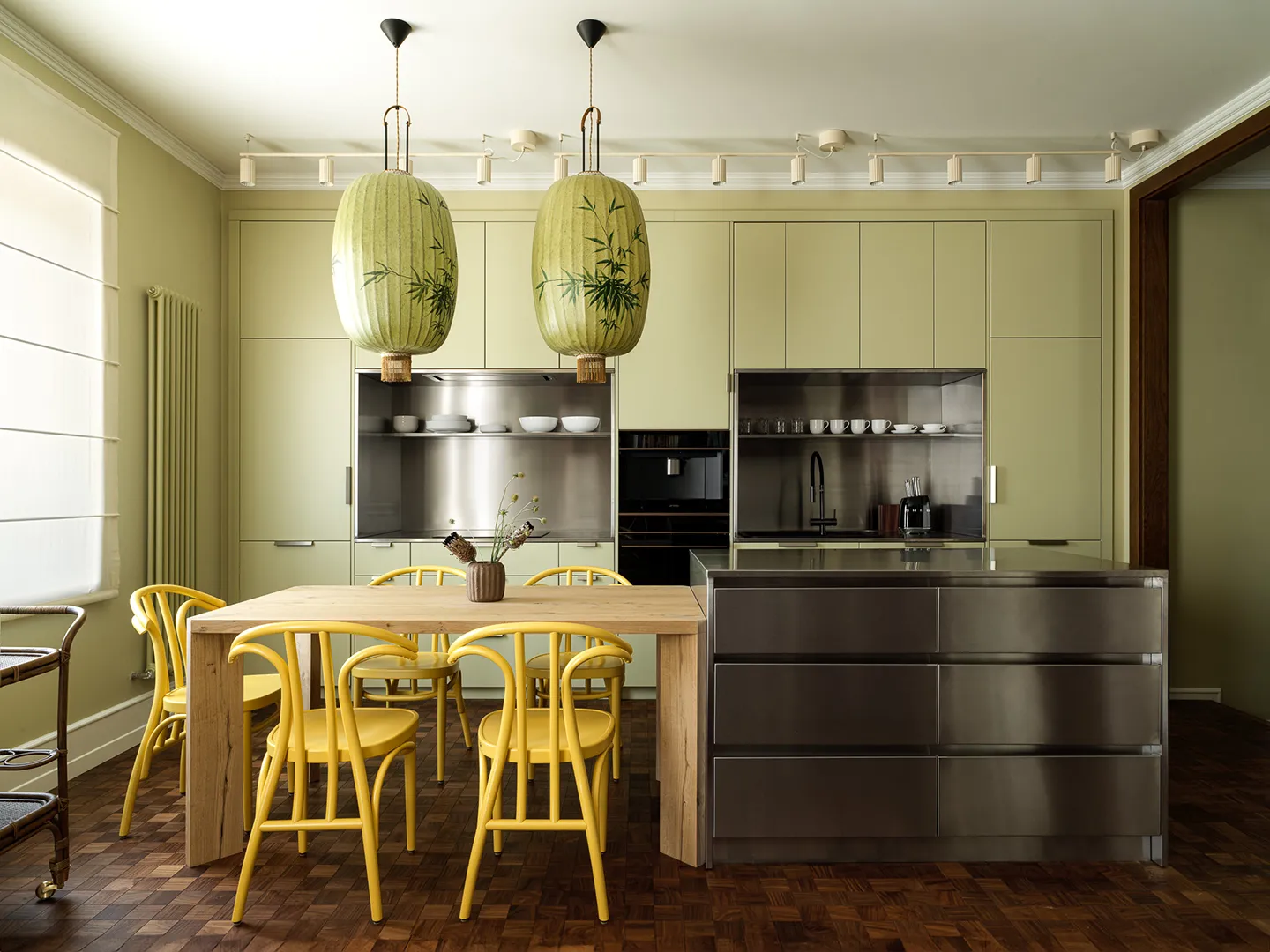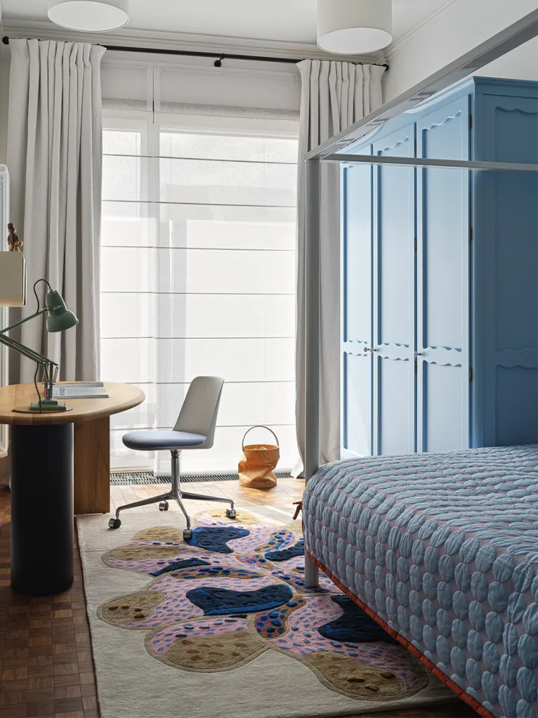 Проект дизайнера Элины Муссакуловой в Алматы (133 кв. м) отличается смелой палитрой. Кухня, поднятая на подиум, объединена с гостиной. Яркие цвета, как «противоядие» от прохладных сезонов, и функциональные решения создали уникальный, артистичный интерьер.