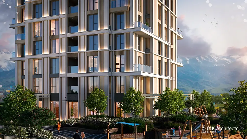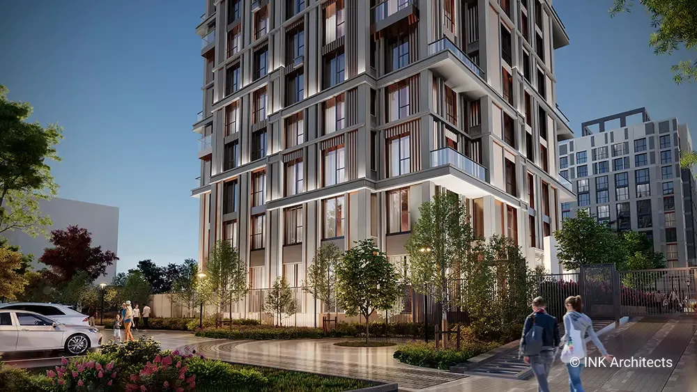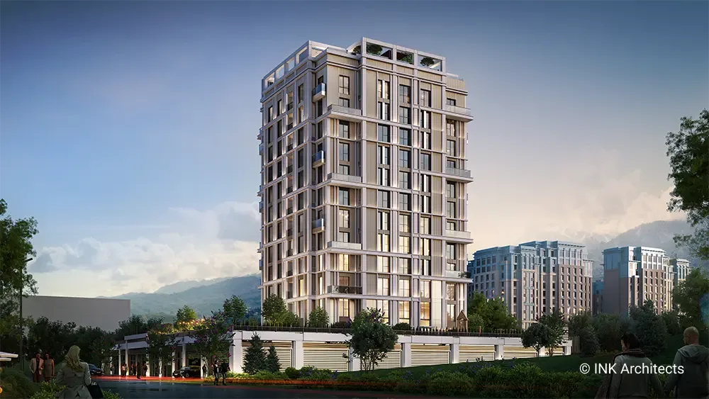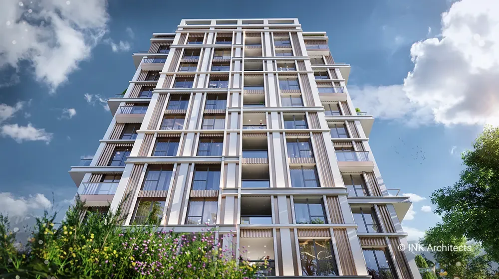 Club House 44 embodies the essence of refined architecture, blending modern aesthetics with functional living spaces. Designed to harmonize with its surroundings, the residence features an elegant facade characterized by clean geometric lines, vertical elements, and a balanced interplay of glass and metal. The structure is carefully oriented to maximize natural light and offer expansive views, creating a seamless connection between interior comfort and the dynamic cityscape. With a focus on exclusivity, the development prioritizes privacy and tranquility while maintaining close proximity to urban amenities. The architectural composition integrates sustainable materials and advanced building technologies, ensuring both longevity and energy efficiency. Thoughtfully designed terraces and common spaces enhance the sense of community while offering residents a serene retreat from the city's bustle.